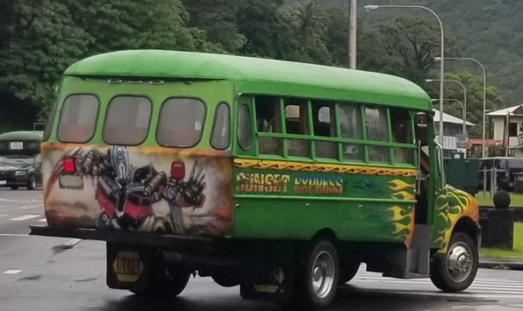 We have a rental car lined up for tomorrow. They drive on the right here which will be nice. Our last NP we visited was on St. John, USVI and they drive on the left. Side Note: the distance between our parks #’s 3 and 4 in FL were 11 miles (Everglades and Biscayne) …the distance between our park #’s 5 and 6 was 7000 miles! (Virgin Island to American Samoa). The top speed limit on this Island is 35mph. The roads are actually very nice and wide. There are a lot of bigger vehicles here, very unlike our experiences on other islands. A large number of newer model Toyota Tacoma trucks here and a Toyota dealership. We noticed immediately since Elizabeth has a new Tacoma. The main road goes from the far east end, 32 miles to the west end. The 9 islands of American Samoa have only 77 square miles of land and 55,000 people. The city of Phoenix is 517 square miles.