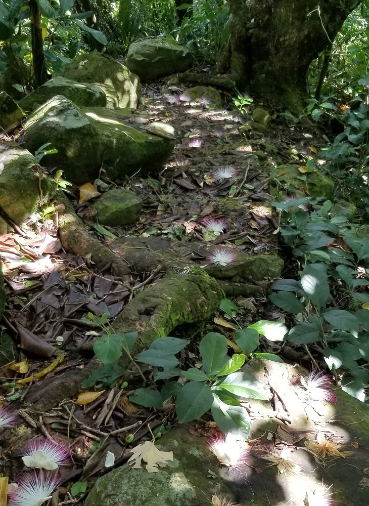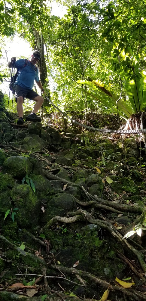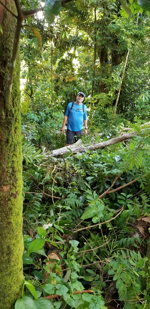 • Yesterday’s hike on the WWII Heritage Trail was really wonderful. Tough ups & downs (ropes for the downs in places to assist). Dirt trail was wet and we climbed over trees that had fallen and around overgrown brush in a couple places but over all the trail was well maintained. Lots of frogs, lizards and beautiful views!