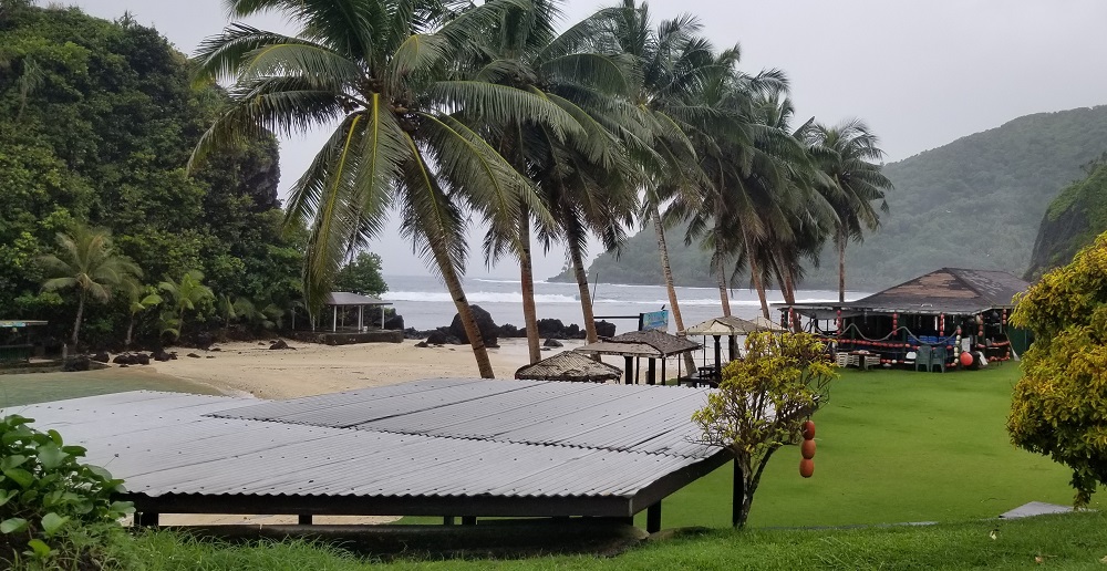 We are now in Pago Pago, pronounced pongo pongo. All smooth travels. They had gale force winds and heavy rain yesterday. The pilot warned it would be a rough decent, but for some reason the winds died down and the rain stopped for us to land. The rains came back and it has poured all night. Birmingham Alabama is the rainiest city in the lower 48 with 69″ of rain per year. Pago Pago’s average rain fall is 128″, 253 rainy days a year. In a few days we go to Hilo, Hawaii where they get 130″. We were just in Kona, 70-mile drive from Hilo where they get 8″ a year. Hawaii has big mountains that cause the rain difference. Mauna Kea is 13,800′ high.