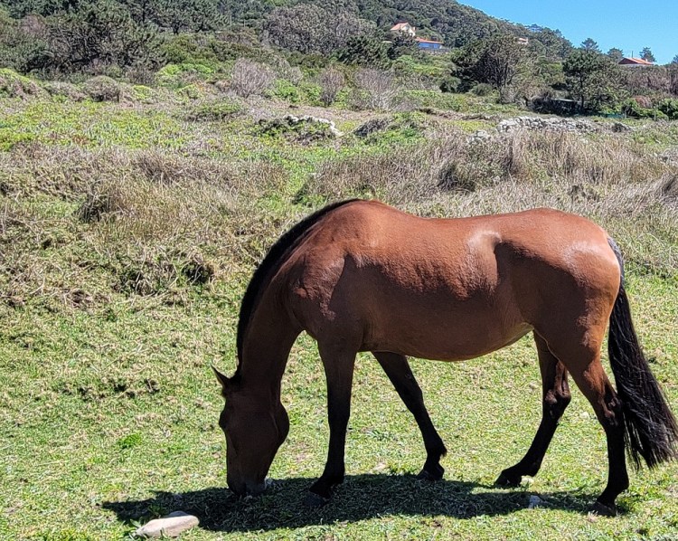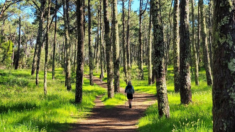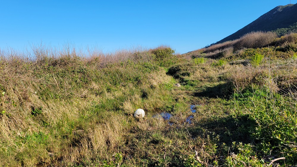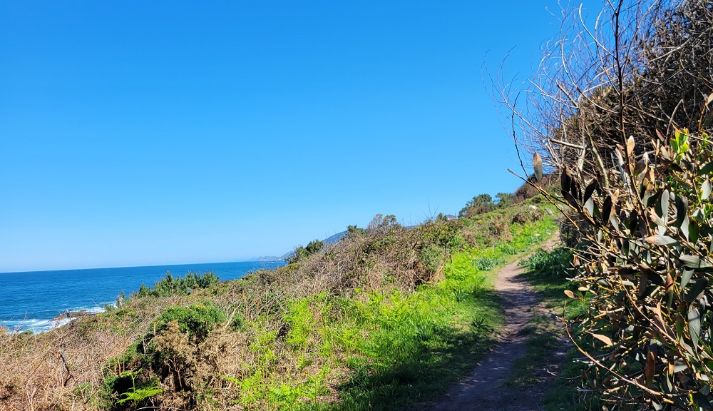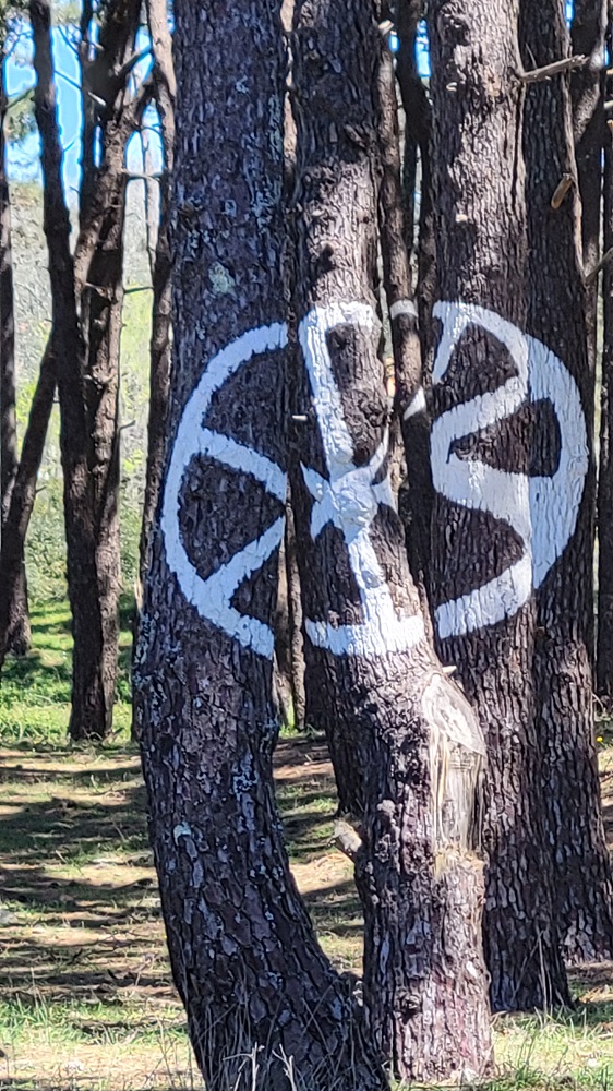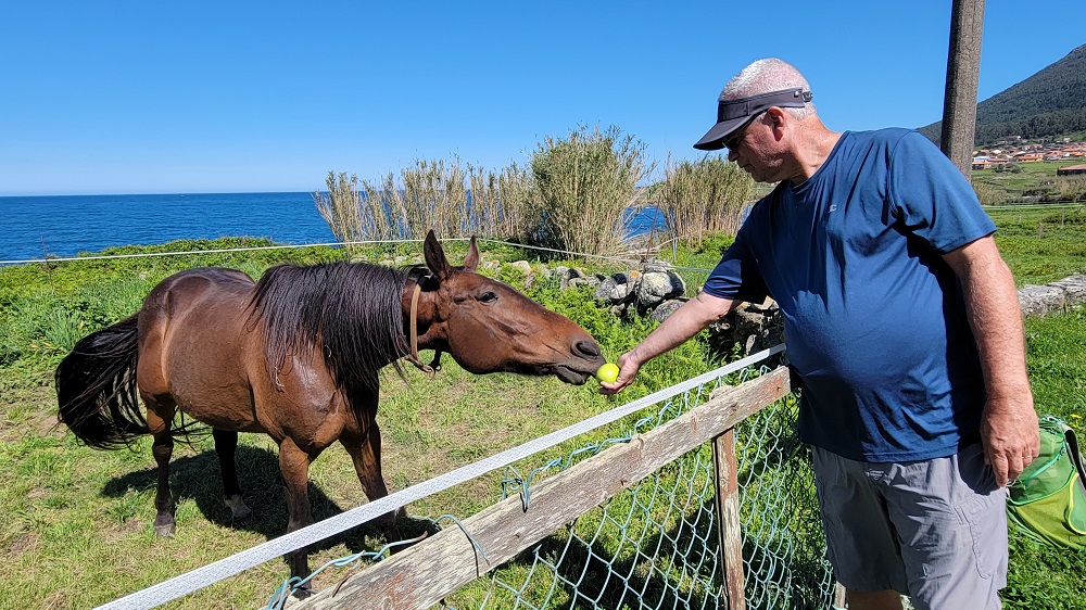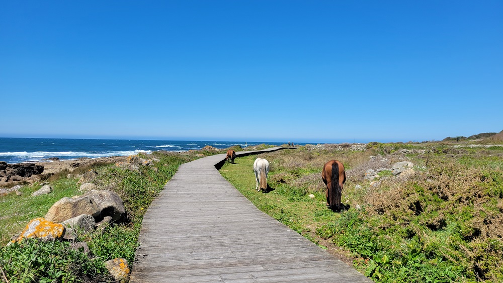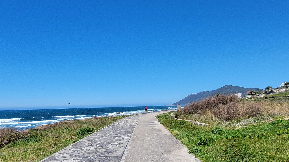 I said the path is now well marked, but that didn’t keep me from missing a turn. I ended up in a swamp. At first I thought I could make it through the area but realized it wasn’t worth it. With wet feet I had to walk back almost a half mile to the missed turn. Oh well. The trail today was quite varied. The ocean was rarely out of view. The path now has small ups and downs and there are hills to our right and no where near as many homes. I have been enjoying this walk more every day. Today was the first day that the majority of people on the path were Pilgrims and not locals.