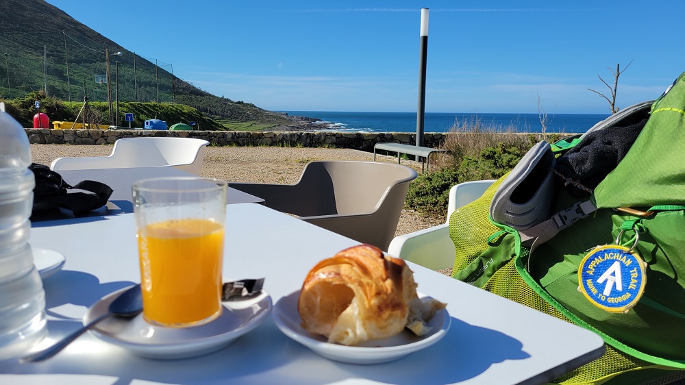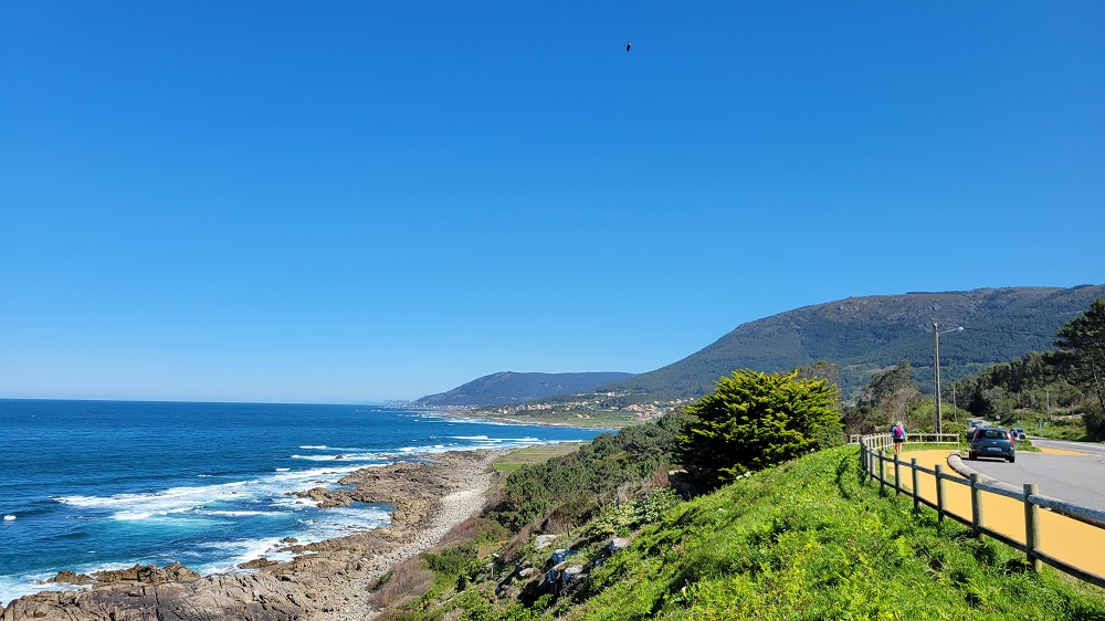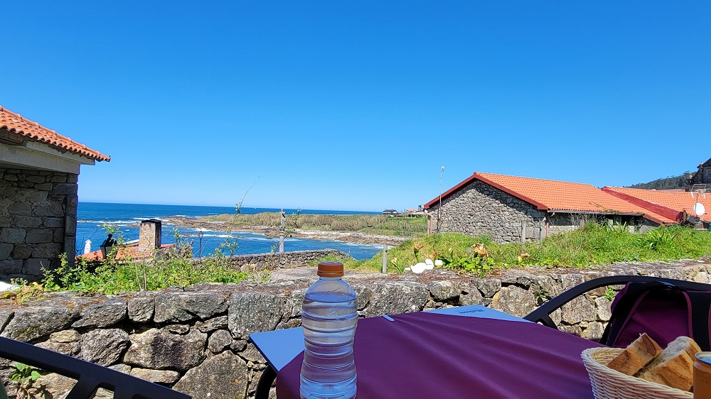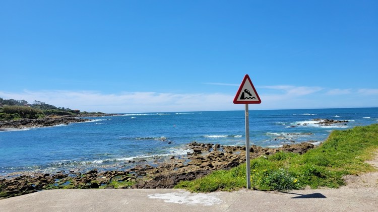 The path in Spain is well marked. The regular coastal route did not cross the Minho River yesterday, so no more confusing which route to take. The sand beaches are gone and a rocky coastline has taken its place. Most street signs and directional signs are in Galician, not Spanish. That was also true of the menu at lunch. The languages are close, but I couldn’t understand several things on the menu. Google translate to the rescue.