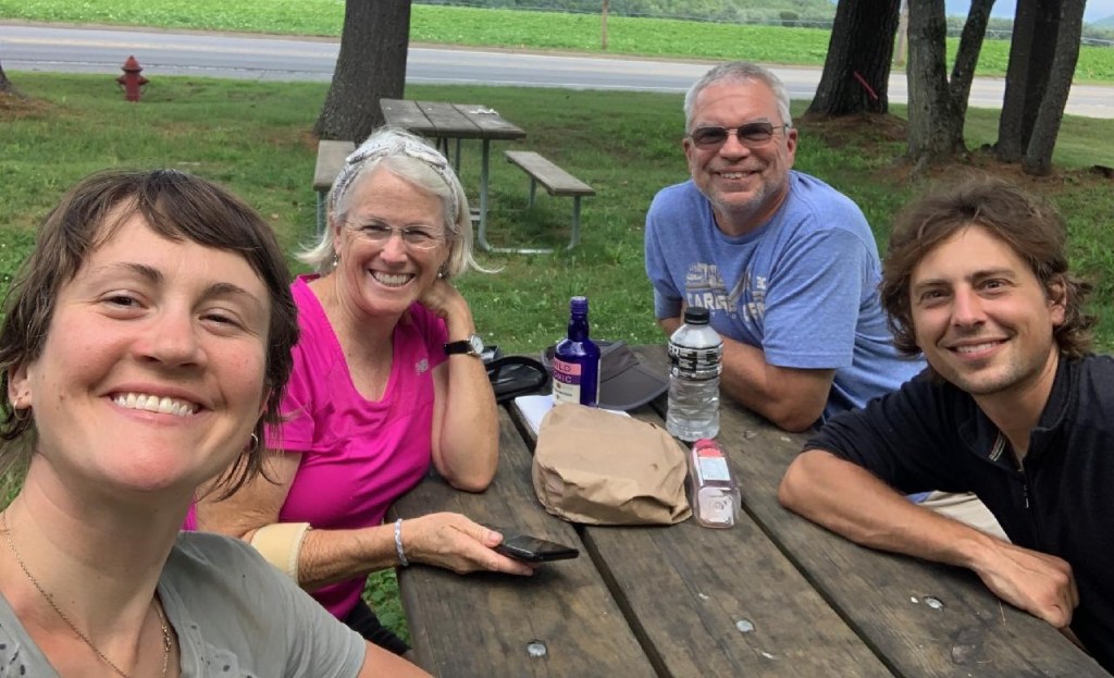 We have been planning to connect with a married couple in our age category who Gary really enjoyed hiking with earlier this summer. Gary has been communicating with them via text for weeks. AZ (Gary’s trail name), Rangeley and I met up with Grasshopper and his wife Metta (their trail names) at the Town and Country Motel in Gorham, NH. Grasshopper is a retired orthopedic surgeon and Metta is a retired teacher/principal from Michigan. Trail names are either self-given or started by others once you are on the trail. Gary called himself AZ because he is from Arizona and it stuck. A few years ago, we did a lot of trail magic (explained further down) and some hikers started calling me “Miss Arizona” … the trail name “Talks-A-Lot” was already taken! Some other acquired trail names given to hikers once on the AT are: “Little Pot”, a woman that had a tiny cooking pot. “Fuego” (Spanish for fire) was given to our oldest son, Cooper, who section hiked with Gary 3 years ago, because Cooper was determined to start a fire each night, rain or shine. “British Detective” (he was one!), “Go Far” – a guy that was from Fargo, ND but his fellow hikers liked Go-Far better. “Skittles” liked Skittles and “Chef” is one. You get the idea!