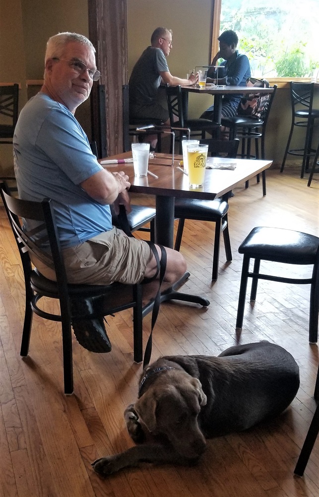 We stopped at The Public House in Gorham for a late afternoon meal. They let Rangeley go inside! The staff and owner love dogs. They offered him water and a dog bed! Very fun! Good food.