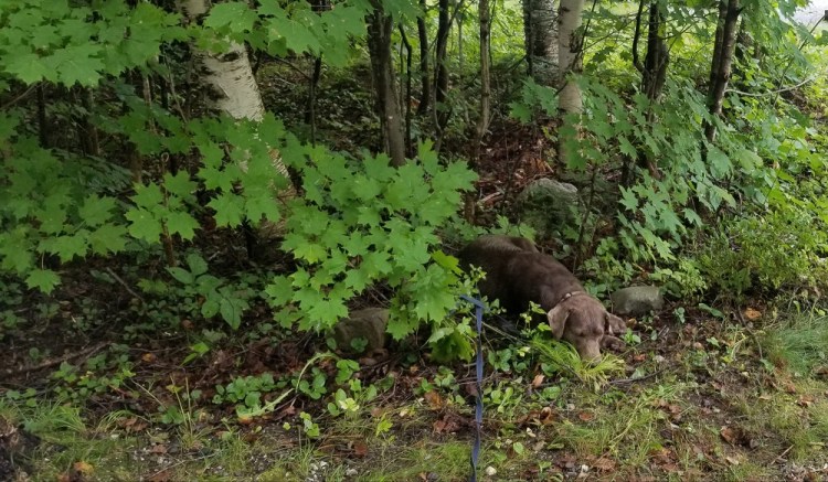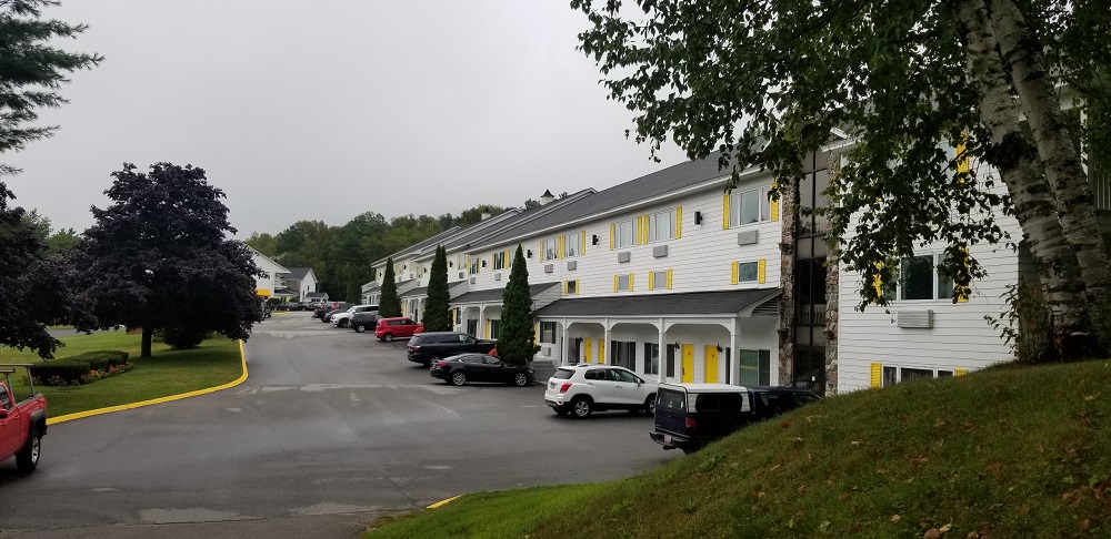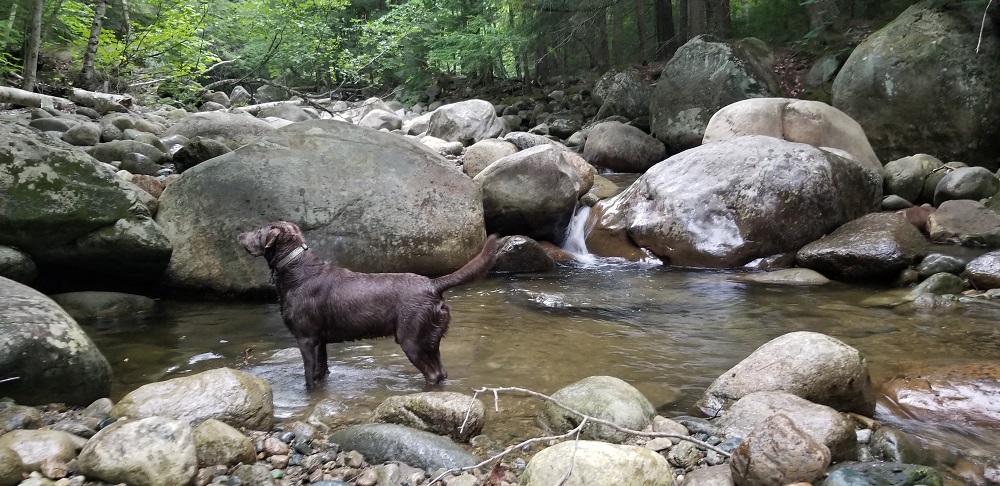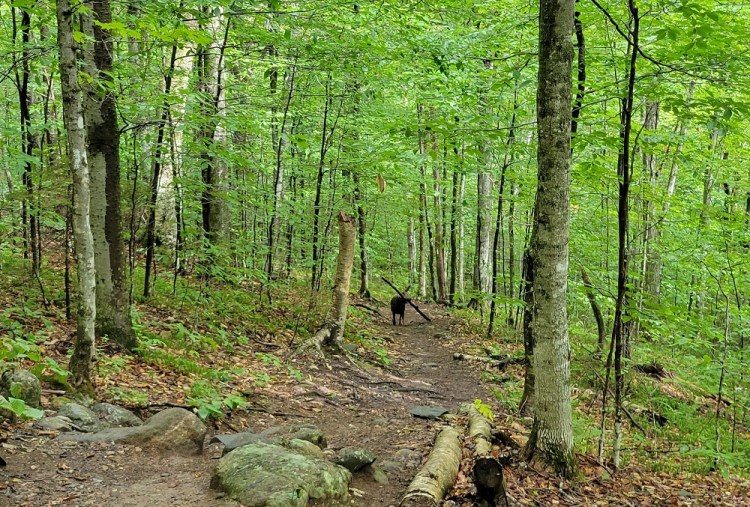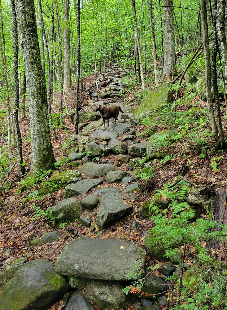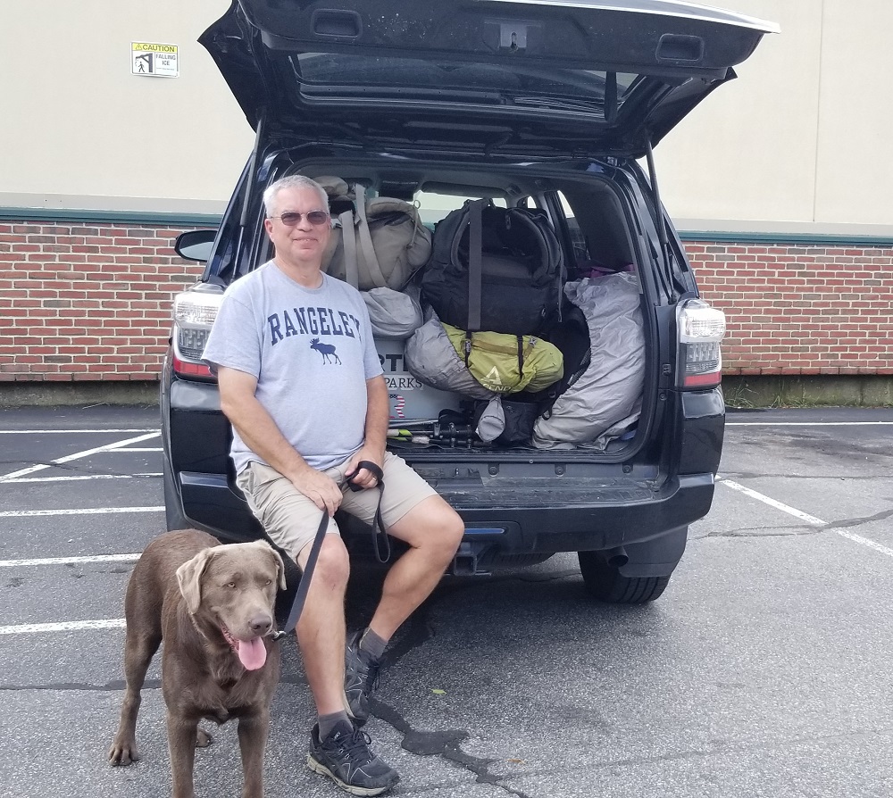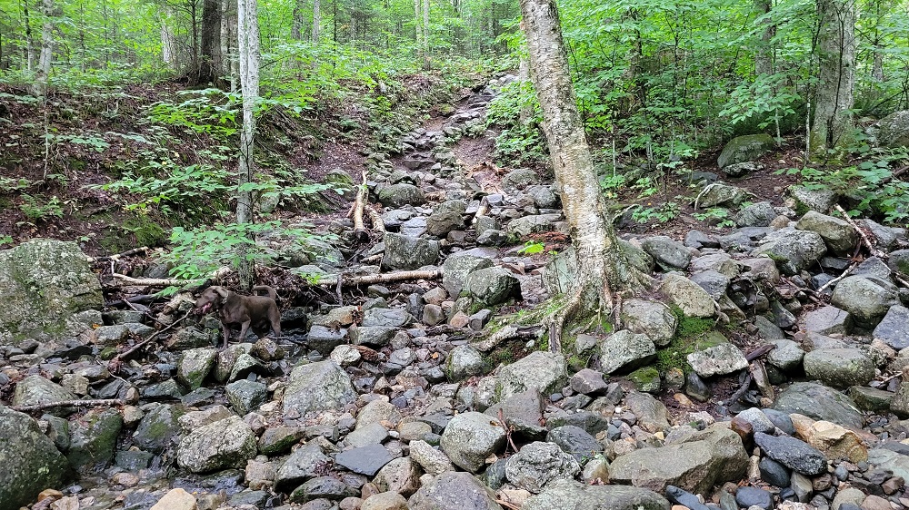 In the morning we drove the roughly 35 miles into Maine, from our hotel in Gorham, NH, to the AT’s Grafton Notch parking lot. There are other places to stay between the trailhead and our Hotel, The Town and Country Inn, but Gorham is bigger (grocery store, café’s and restaurants) and they allow Rangeley. Best of all, there’s an ATV path behind the hotel that we can walk to in the evening so he can let let off some steam before bed.