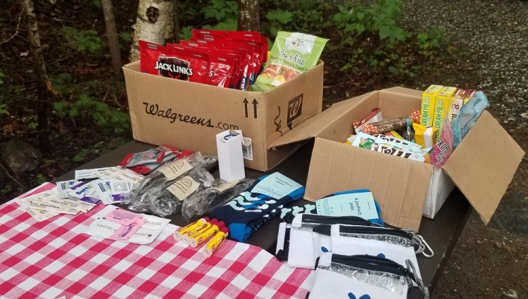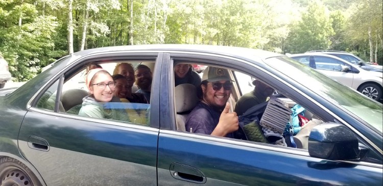 We offered rides to three thru hikers going to Bethel, ME which is on our way back to our hotel. They had not pre-scheduled a shuttle. AT shuttles are provided by people that publicly (on a bulletin board in a hostel or at a grocery store for eg.) advertise they will transport hikers from a hostel or hotel to/from the trail or they are residents of a nearby town that will bring hikers to a grocery store, laundry mat, restaurant, etc. Some charge and do the shuttling as a job, like an Uber driver, some volunteer their time. One can almost always get a ride (possibly free or for a charge) via the well known hiker App. Guthook. In our case, it was a last-minute decision to pile three hikers and three large back packs of roughly 30 lbs each into our car with Rangeley, Gary and I, two large coolers and all the trail magic supplies. I might mention that we only have four seats total so it was a Tetris game fitting us all in! : ) We took them to a grocery store, waited a half hour and then on to the hotel they had booked. It was a really fun and rewarding day for all. I admire their stick-to-itiveness on this grand adventure!