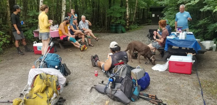- Doing Trail Magic for 10 thru hikers that have walked 1900 miles on a mostly wooded foot path called the AT… they still have over 250 miles to go and they are smilin’!