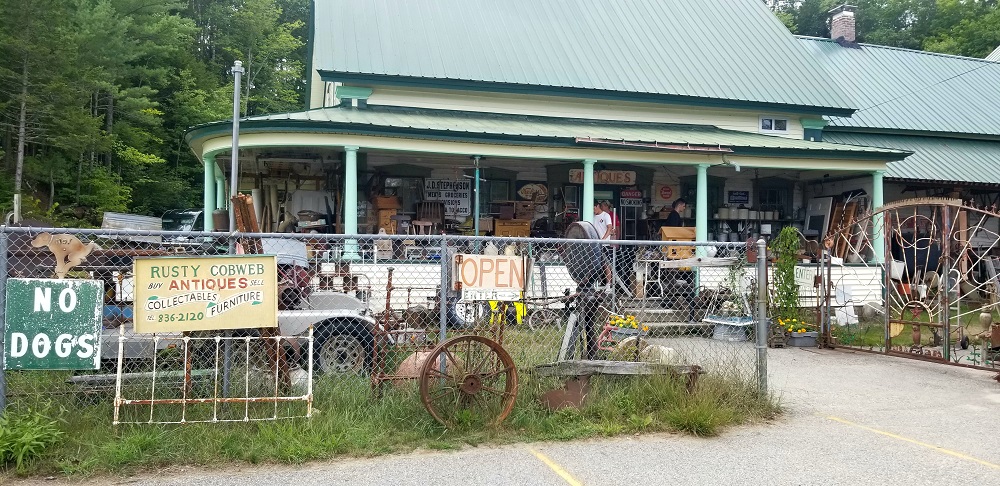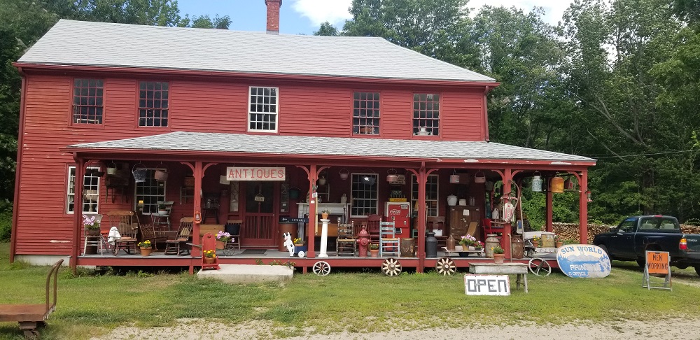 - Antique stores in what used to be an 1800 homestead or barn. With half their stuff permanently on the porches outside!