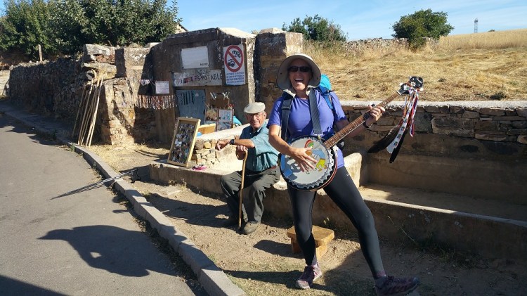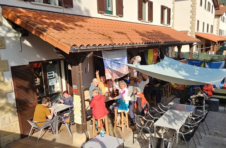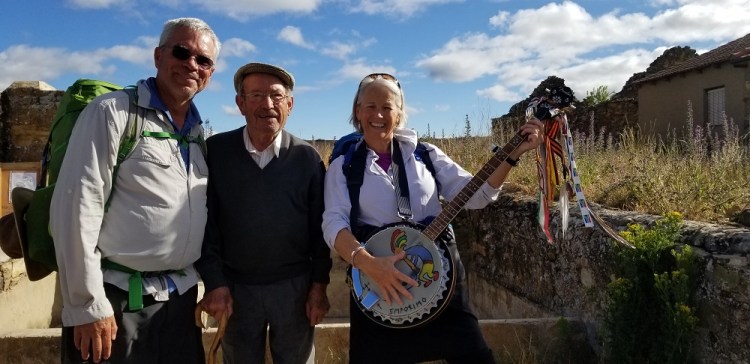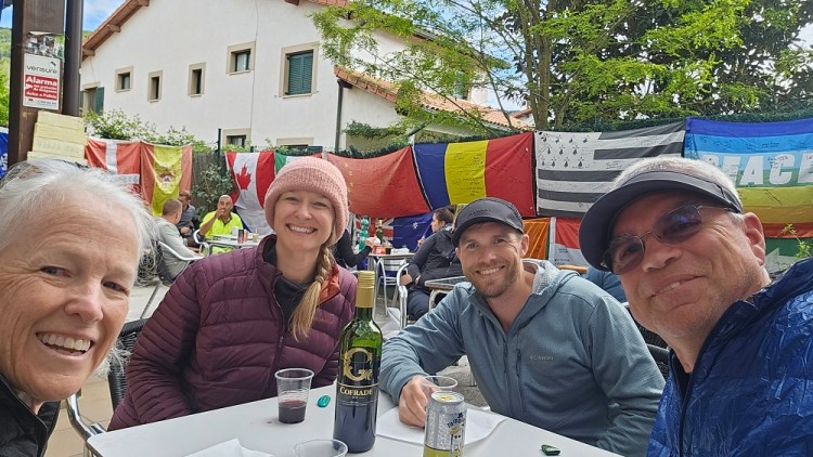 Also in the first group was a gentleman from Belgium. He looked familiar so I asked if he had walked the Camino previously. Yes, this is Camino number 14 for him. In fact he loves it so much he moved to Larrasoana (a small town on the Camino, right before Pamplona). I said that’s it. He owns the shop at the end of town we love. We have made a point of stopping there our past 3 Caminos. We actually celebrated our anniversary last May with Cooper and Chelsea there. In Europe anniversary often means birthday. He said he wanted to say hi to Elizabeth and for me to do a video of him. So I did and sent to Elizabeth. What a fun random meeting. I went online and found a number for the shop and sent a note. The number was from 10 years ago and the person didn’t know the current number.