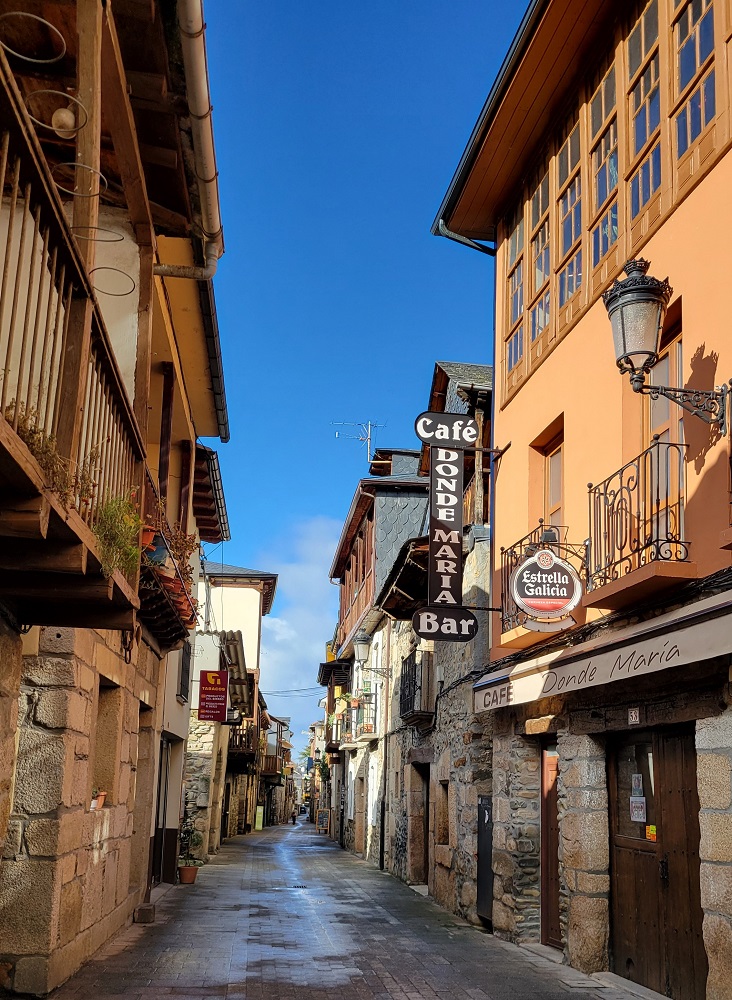 Once at the bottom in Molinaseca it was very pleasant, sunny, no wind, so I took off my jacket and walked in just my long sleeve shirt. The 4.5 miles from there to Ponferrada are fairly forgettable. The first half is on a sidewalk, then back roads into Ponferrada. We have stayed in Ponferrada previously, so this time I walked ½ mile further into a section of town I had never been in. I am staying in a nice clean place, quite roomy, with a desk, for $42.00.