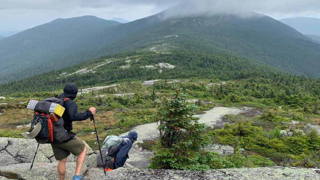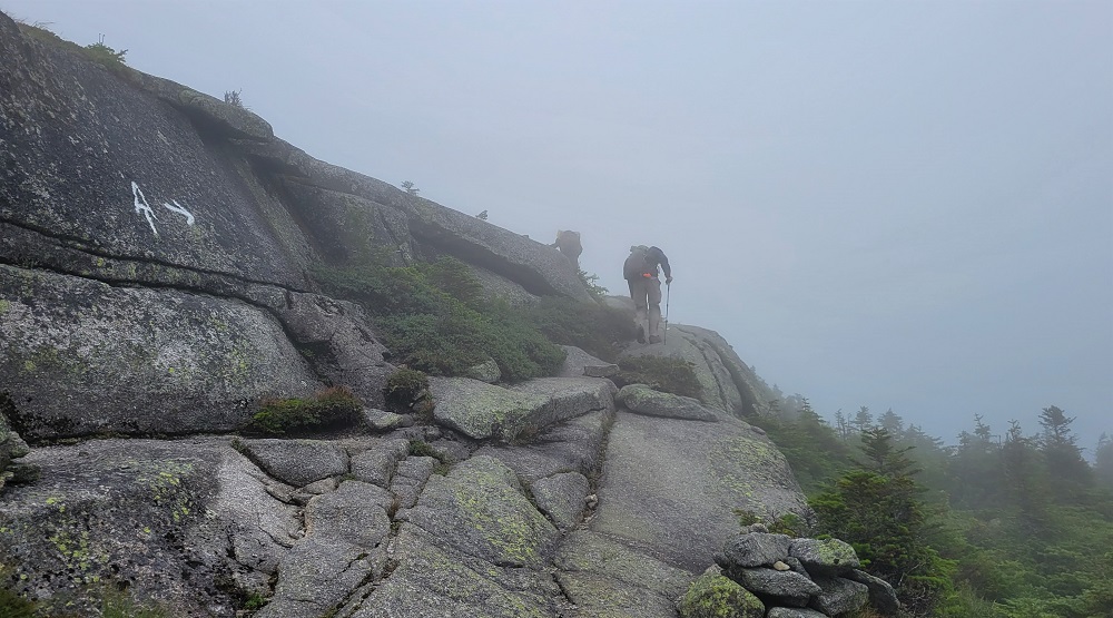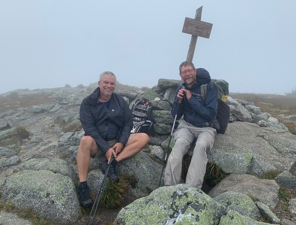 The next morning Grasshopper and Gary hiked 5.7 miles to the summit of Saddleback Mountain. A few miles in they caught up to Sticks and Ranger (who we had lunch with a few days ago), another thru hiking couple that Gary had hiked with last month. The four of them summited in the clouds on a chilly windy morning. After a snack and some rest Gary headed south back to the parking lot and the three thru hikers continued north where we all planned to meet tomorrow afternoon at the Stratton road crossing.