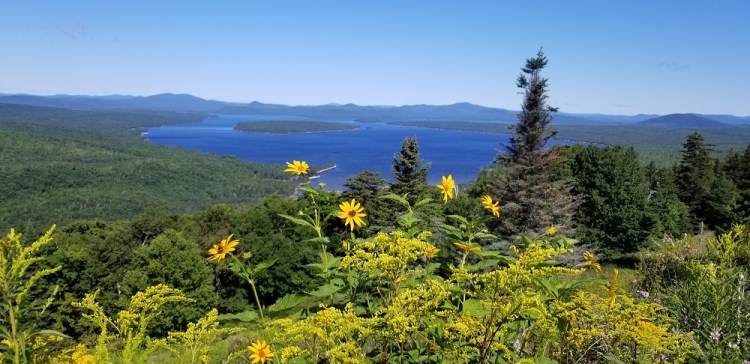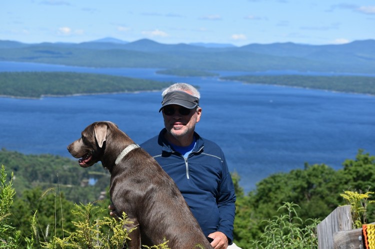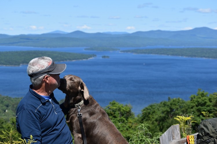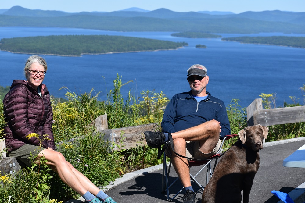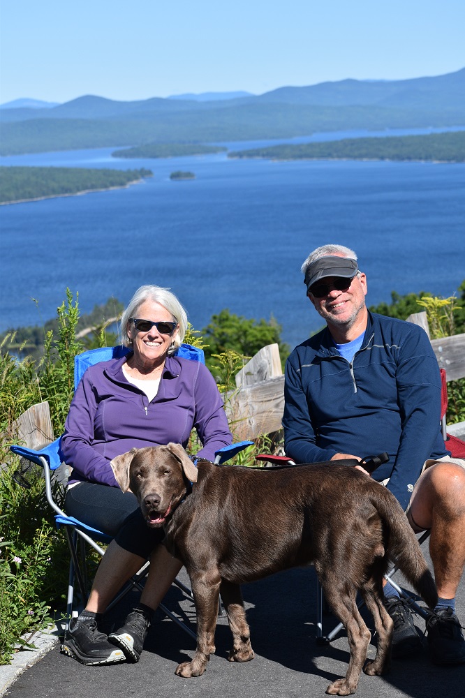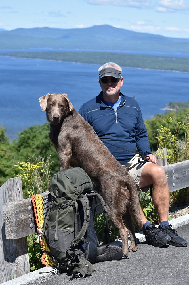 We have been excited to go to the Rangeley Lakes Region in Rangeley, Maine for a few reasons. Our 15-month-old Silver Lab, Rangeley was named after this area; We enjoy the Town and Lake Motel’s lakeside rooms with a back deck spanning all the rooms allowing each guest to overlook the lake on their private chairs; and we have met several Appalachian Trail (AT) thru-hikers this trip and are meeting up with them again. When Gary thru hiked and section hiked we stayed at this motel.