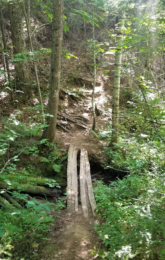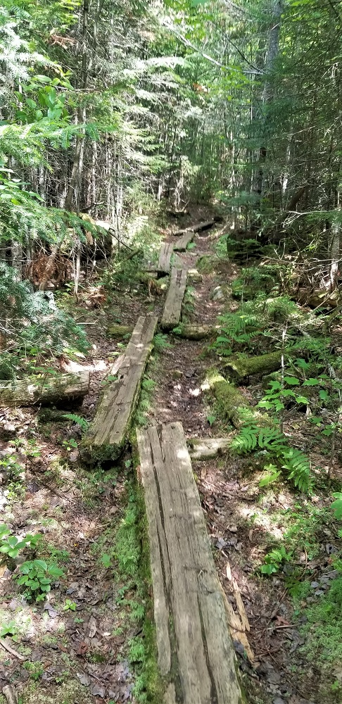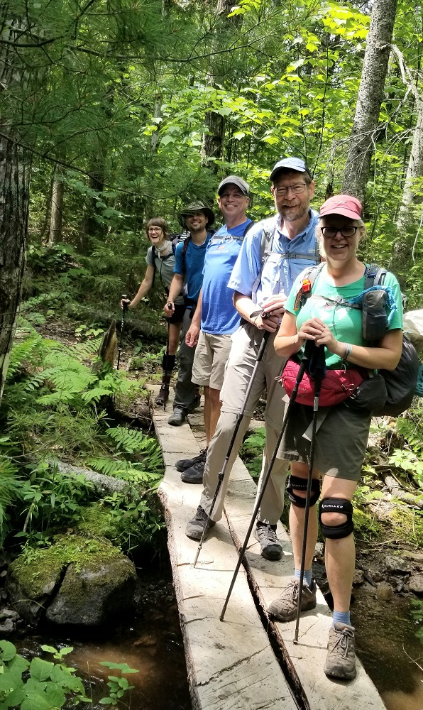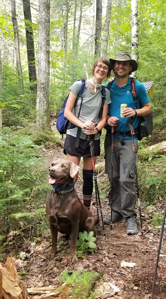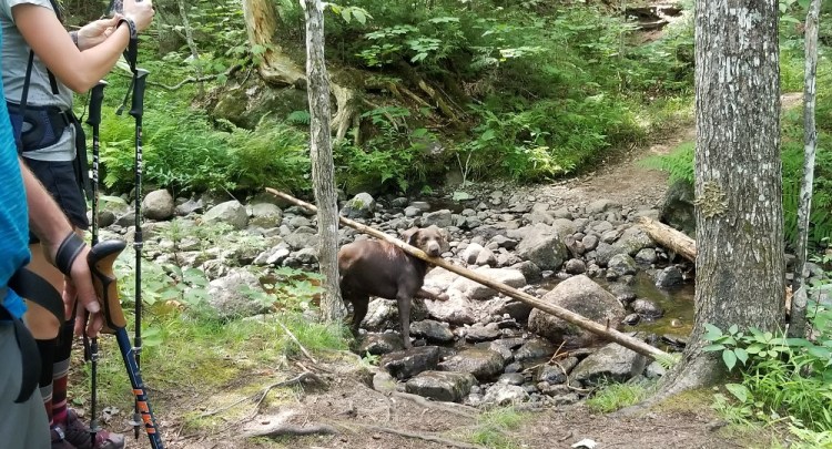 Today (Thursday 7/29) was our last full day full day in Rangeley. The hiking crew decided a slow start was in order so we cooked a breakfast of scrambled eggs, bacon, fruit and cinnamon rolls for Metta and Grasshopper before loading up and driving over to the Stratton trailhead. Gary dropped us off then continued a few miles down the road to the Hostel of Maine to pick up Ranger and Sticks. The 6 of us then headed north on the AT together with Rangeley leading the way. I had hiked a mile in yesterday so I was familiar with the terrain. At first, I was a bit nervous about slowing down a bunch of seasoned thru hikers, but they were supportive and welcoming at my pace. Rangeley loved the fact we crossed about 6 streams in the 2-mile journey into the woods filled with sticks. We had to return on the same trail so he got to play in every stream twice! Talk about Rangeley heaven. At our turn around point we said our sad good byes. We plan to connect with Grasshopper and Metta again. Once we got back to the van our very tired pup crashed as soon as we pulled out of the parking lot.