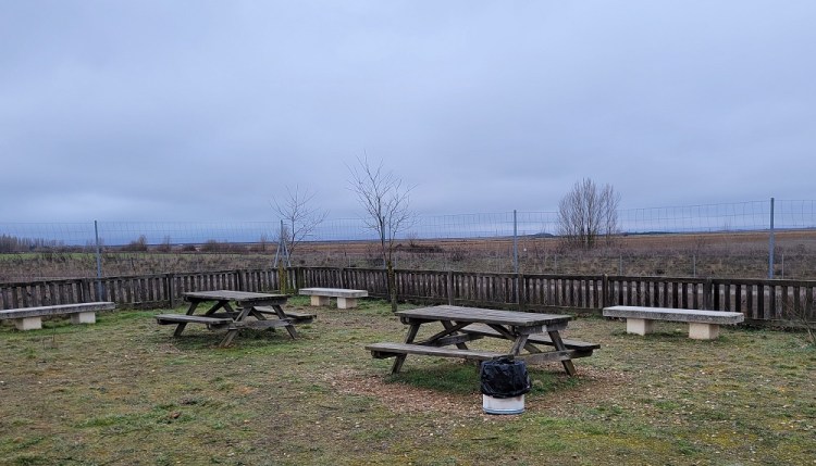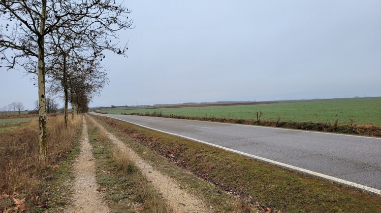 Today’s walk was along a road the entire day. Very low traffic as the main highway was also parallel, but about ½ mile away. The train tracks were also nearby – I saw I think 6 trains today. Compare that to the two Pilgrims, a few locals, 4 cats and 1 dog.