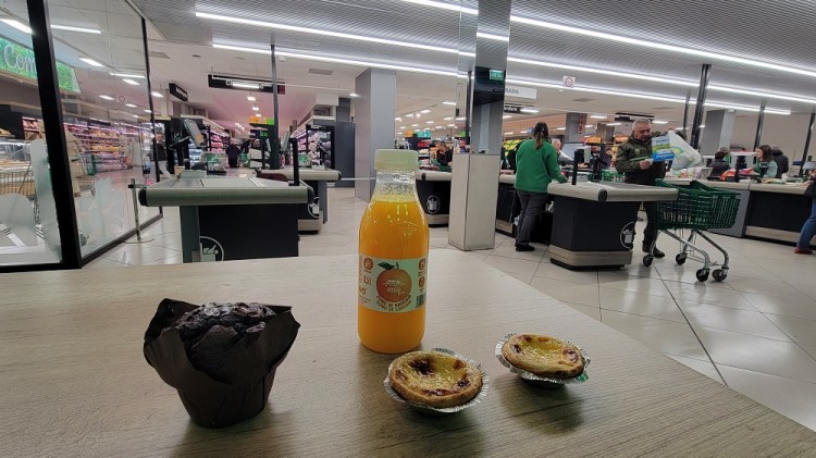 Once in Leon I stopped at probably my favorite grocery store for a late breakfast. Elizabeth and I have stopped here before. I got my fresh squeezed orange juice, fresh natas and a chocolate muffin. I sat at the warm, dry tables inside the front of the store and watched everyone check out. Life is good.