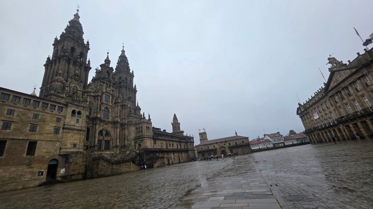 My original plan had been to get lunch, then a bus south to Padron and walk the Portuguese route south for 2 days to Pontevedra and catch a train from there to Madrid. At the pilgrims office I changed into dry clothes and also checked the weather forecast. Flood warnings for the next 3 days. Padron is expecting 1-2 inches of rain tomorrow. Pontevedra over 2”. Hmmm. I went to lunch at my favorite Italian restaurant and decided I would spend the night here in Santiago and not go to Padron. Give myself a night to come up with a plan. I have to be in Madrid on Thursday night to catch my flight to the US on Friday. The rain on the coast is supposed to be only .5”, so maybe bus to Muxia. Trouble is the winter schedule has only slow busses with lots of stops and only 3 per day.