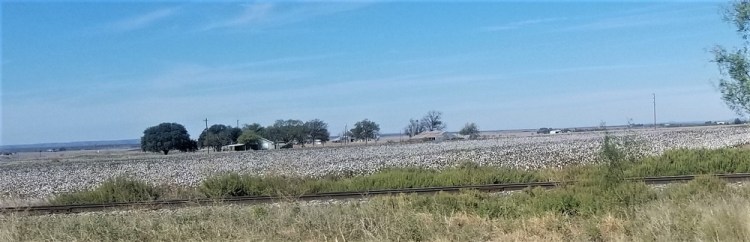 On our drive we passed large fields of cotton. Its planted in southwestern TX May-June and harvested September through December. We have fields of Pima Cotton, on the Pima Reservation near us in Phoenix. See pic.