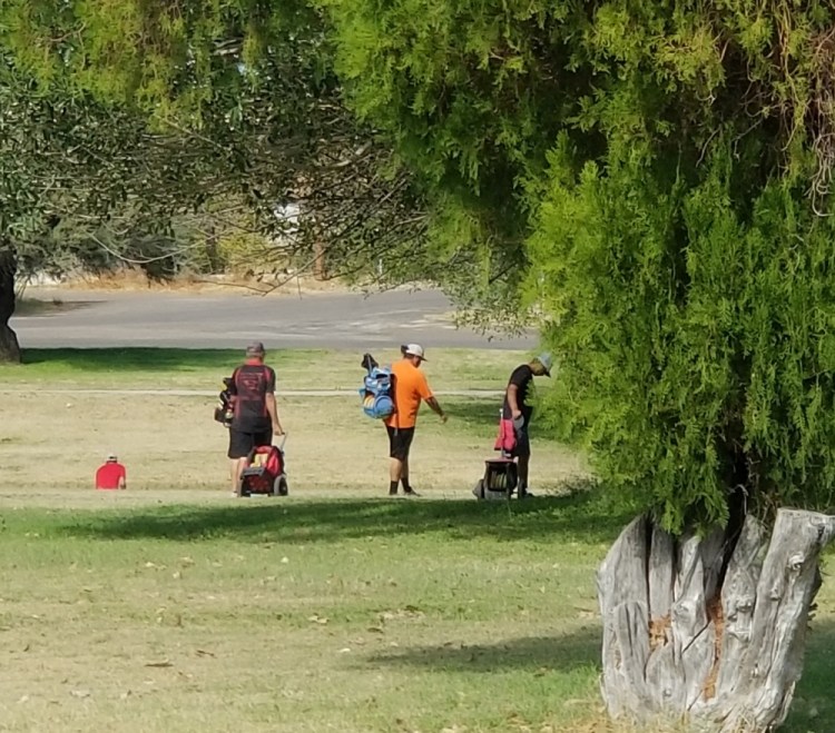 We are staying in Fort Stockton, TX before we head to Big Bend NP tomorrow AM. We ventured out to James Rooney Memorial Park named after a prominent Fort Stockton man born in 1873. Rangeley enjoyed the bark park and we watched a few 20-30 yr. olds playing Disk Golf with their quite serious back packs and roller bags full of all kinds of disks.
