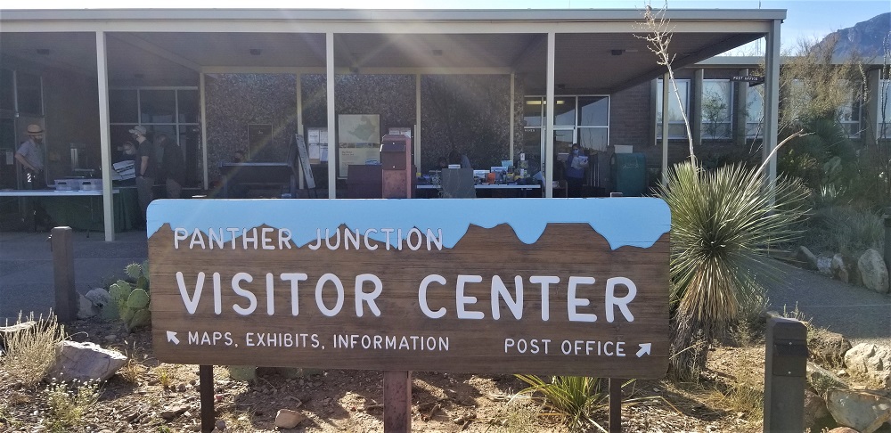 Next stop was Chisos Basin Visitor Center where the Chisos Mountain Lodge and Restaurant are located. Neither appeared to be open but the gift shop and outdoor supply store was open and the visitor center also had tables out front with rangers answering questions and handing out maps.