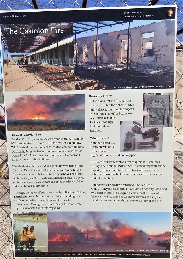 Since this park is not particularly dog friendly, we enjoyed the views from the car on the Ross Maxwell Scenic Drive. Loads of picturesque vistas. It’s roughly 30 miles to the park’s most southwestern visitor center, Castalon. Sadly, the Castalon valley was devestated by a wild fire in May 2019. The cafe and visitor center area were severely damaged so it is closed and under renovation. We did enjoy the beautiful views of what used to be cotton fields planted in 1923 in the valley below along with some interesting cotton harvesting equipment onsite from that time period.
