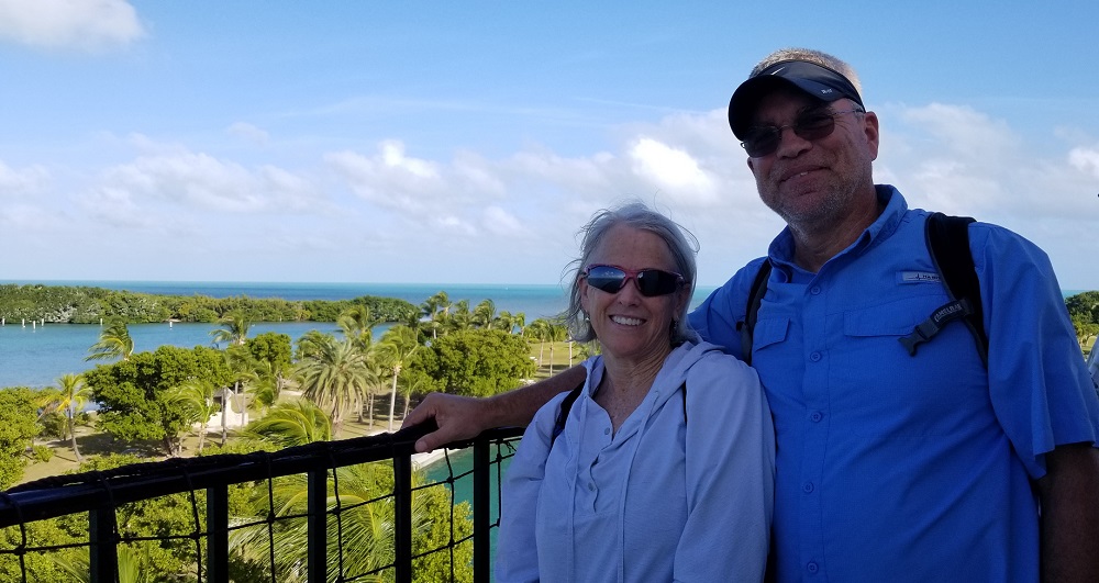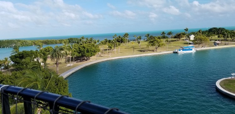 After leaving Key West in a rental car we picked up at the Key West airport on the morning of Dec 17, 2019, Sherry, Gary and I drove up the Keys heading for Homestead, FL. The GPS is so funny to look at as the arrow is traveling through nothing but blue screen. It’s a roughly 125 mile drive mostly on man made soil and coral fill to make the road slightly higher than the one-way in, one-way out of Key West. We traversed 42 bridges in between our long stretches of “land” close enough to almost touch the ocean on either side.