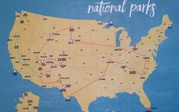 There are dog restrictions at many of the Parks, but this is more about the journey. Just outside the parks are tons of outdoor experiences that are dog friendly. There are lots of dog friendly lodging options now, as well. We figure this is a great time to get out and support the travel industry. When I first proposed this idea to Elizabeth, I figured there would be no way she would go for it. I had 3 options – Going through Colorado and Utah – doing California and Oregon (the green loop on the map) – and my choice – going for 27 Parks. It actually took very little persuading – she has enjoyed doing research on things to bring, dog activities, etc. With the hot Phoenix summer we have had, it has been great fun planning a getaway.