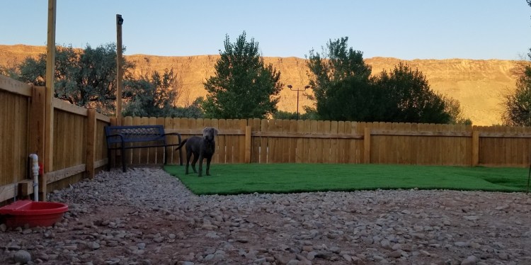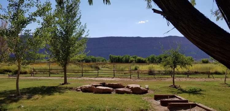 We are staying at Aarchway Inn (yes, 2 A’s), just north of the main Street of Moab and very close to the entrance to Arches NP. The grounds of the hotel are lovely with lots of grass, a pavilion with a gas grill which we have already tried out, a nice fenced-in pet area, kid’s playground, basketball court, and a hiking trail on Bureau of Land Management property that sprawls freely behind the hotel all the way to the Colorado River. They have a coffee shop, gift store, onsite laundry (yay!), bike storage, a pool, hot tub, and more. It’s been a pleasure to stay here three nights as we have been doing lower budget hotels all week ($60-$80/night). But the nightly rate of $150 here is still decent for Moab and for what we are getting, inside and out. See pics.