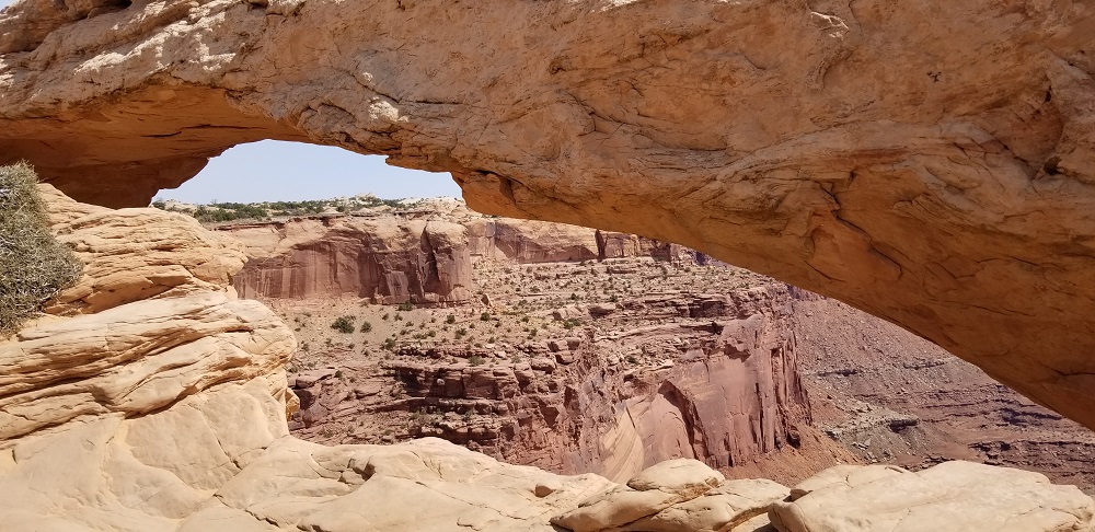 The approach road to the park is about 20 miles long with many overlooks and pull offs to take pictures. This park is only attended ½ as often as Arches! Like most of the Arches, there is no services in the entire park…outhouses, yes, but no food or water available. The long approach road vs being right off the highway might be one reason (?). We went prepared with our 7-gallon jug full of water and brought snacks.