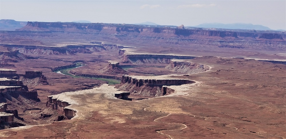 From Wikipedia – This landscape was eroded into a maze of canyons, buttes, and mesas by the combined efforts of the Colorado River, Green River, and their tributaries, which divide the park into three districts. The park also contains rock pinnacles and arches, as well as artifacts from Ancient Pueblo peoples.