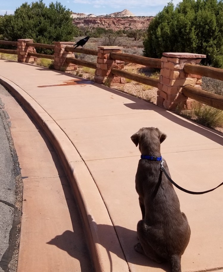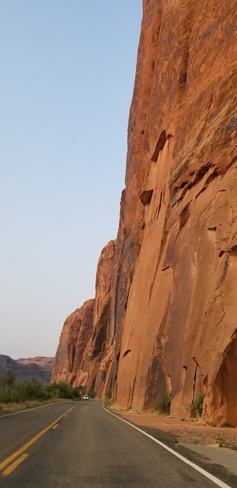 Moab, UT has really been fun. We came here for the Arches and Canyonland NPs but we are exploring and experiencing much more outside the parks too! Moab is a very recreationally based town. With a population of a little more than 5000, Moab is a mecca for individually participating in, and supplying guided tours for, mountain biking, hiking, 4×4 and four wheeling, rafting, climbing/repelling, stargazing (Dark Skies followers), and more. There are music and art festivals held here and the restaurants, coffee shops and lodging are abundant! All is open and bustling with physical distancing where tables are concerned and indoor mask wearing a requirement, but not “enforced”. As I have said, we wear a mask indoors at all times. Moab is very dog friendly on restaurant patios, in town, at many of the hotels and lots of people, with a dog or not, eagerly wanting to pet Rangeley!