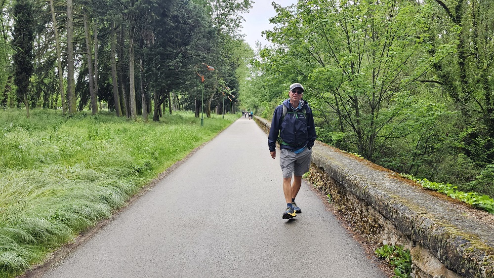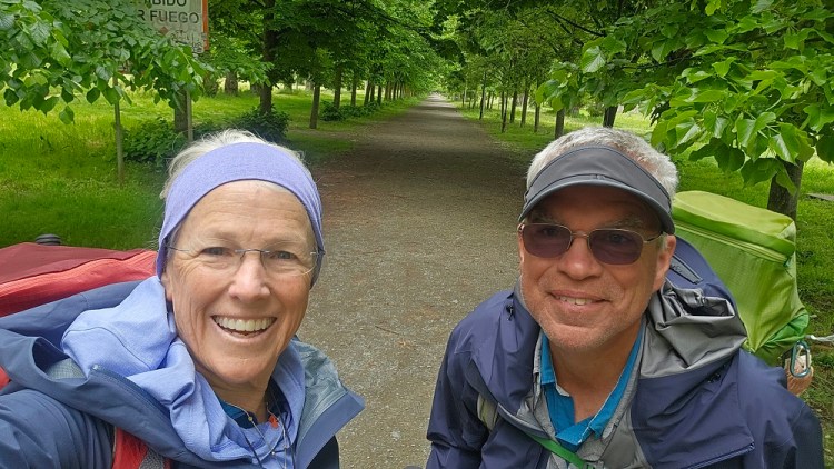 The 9 miles into the city of Burgos was a bit chilly and wet but a short day is always appreciated. We took the Rio Route along the river and through parks. The grass was very tall and wet so the dirt paths along the paved walkways were a dite mushy.