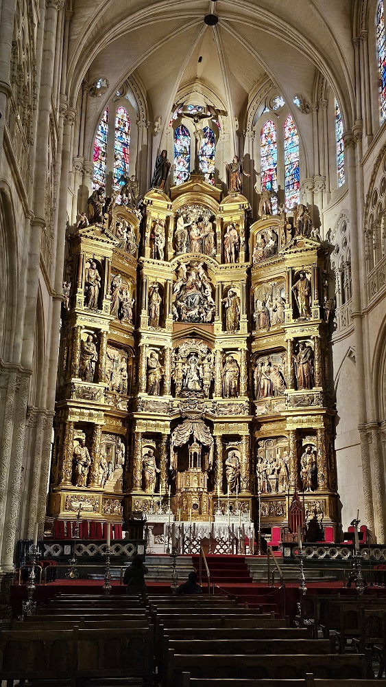 C & C went to the Museum of Human Evolution this afternoon while we ate. We all met at the Cathedral de Santa Maria about 3:30PM, the main church in the old section of Burgos. The entrance fee is a wopping 5 euro ($5.40) each as Pilgrim’s. It includes an App allowing us to do a self guided tour while being told about the 1400’s chapels within the cathedral and more. Lots of pics!