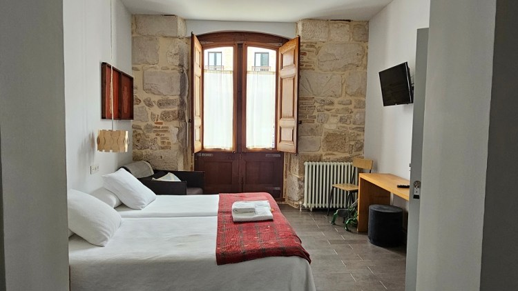 We heard from the kids last night, they had arrived at the apartment around 6:30 PM, after a 26 mile day for them!! Gary had rented it through Booking.com. It rated 9.4! We all agree! Two beds, two bathrooms (with tubs!), good sized living room, decent size kitchen and…coffee, espresso maker and…a washing machine! Cooper let me know about the tubs, which is a rare treat on the Camino. We picked up Epsom salts on the way. The lap of luxury!!