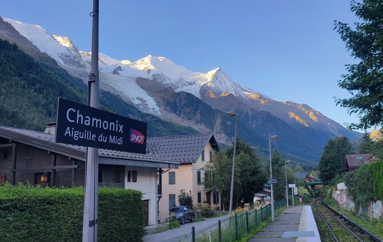 OK, now back to the regular journal. My walk started in Montroc, which is a train ride up the Chamonix valley. I looked at the schedule and boarded at the stop closest to my hotel. Turns out, it goes about a mile and stops at the main Chamonix station for 30 minutes. Oh well. It would have taken me 15 to 20 minutes to walk to the main station, so not a big deal. On the train was a group of 13 American woman who are also doing the Haute route. They ended up staying at the same hostel as me last night. I have enjoyed talking with their two guides.