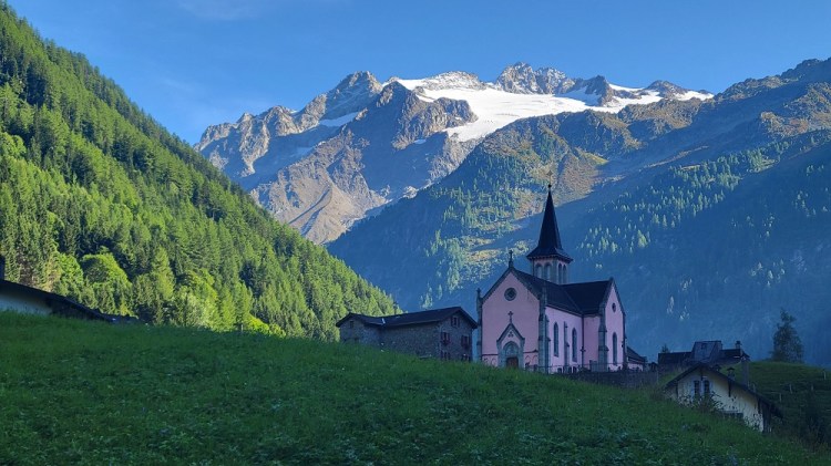 My hiking day ended in the beautiful lakefront town of Champex, Switzerland. There was no lodging available, so I had to take the bus down the hill to Orsieres. Tomorrow morning I will catch the bus back up the hill and continue walking.