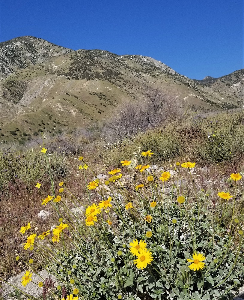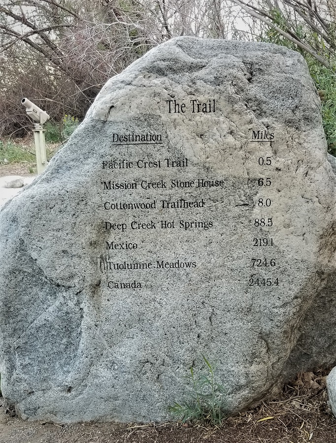 We headed out Monday morning (4/5/21) into Whitewater Preserve, just a short drive from our hotel. It is a 2,211-acre free access park. We went for a walk on the Pacific Crest Trail (PCT)! Gary through-hiked the Appalachian Trail (AT), all 2,100+ miles in a single hike, and this summer he will do 1000 miles of the AT, completing a section-hike of the entire route from Georgia to Maine (hiking the entire route but not in one consecutive hike). When through hikers complete all three of the longest trails in the US: the PCT, AT and the Continental Divide Trail (CDT), they call it a Triple Crown. Rangeley, Gary and I have hiked a few miles on all three trails (we all hiked a bit of the CDT and AT last fall on our last national park tour), so jokingly, Gary said we all completed our own Triple Crown! : ) Enjoy the slide show of our hike!