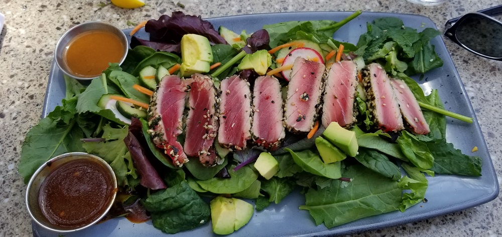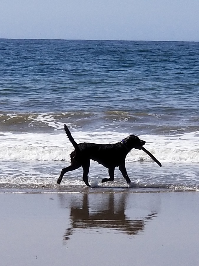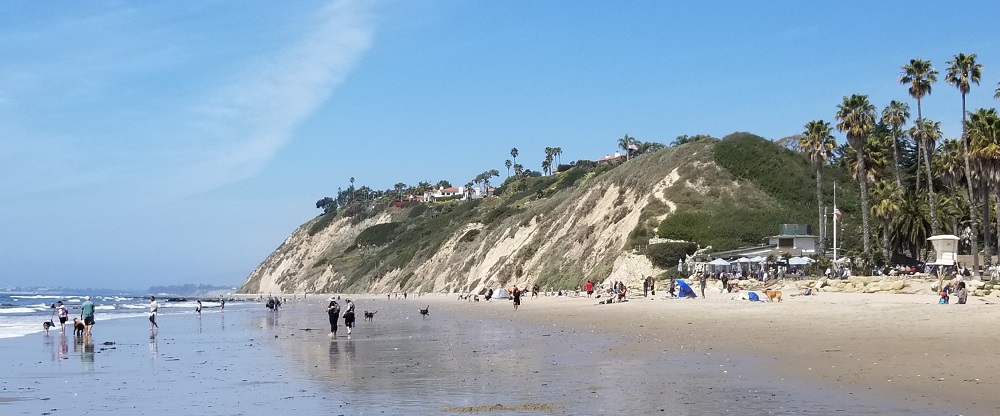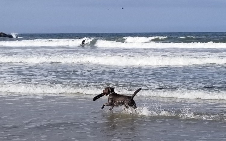 Our next adventure took us to the Boathouse, a restaurant at Hendry’s Beach in Santa Barbara. What a great find! They have an off-lead dog beach to the south of the restaurant and Rangeley not only loved the waves and salty air but he was a perfect gentleman with the other dogs, stayed nearby and came when called! Rangeley loves any water but this was Rangeley’s icing on the aqua cake! We chose to do take out at the Boathouse, after our fist walk on the beach, ordering a burger for Gary and a lightly seared Ahi sandwich with avocado, cole slaw and pineapple for me. We then were persuaded to return to the off-lead side of the beach by our 77 lb., 11-month-old swimming machine! We all had a fabulous time with our toes in the sand, soaking up the sun, enjoying the 60+ degree weather and walking off a good lunch.