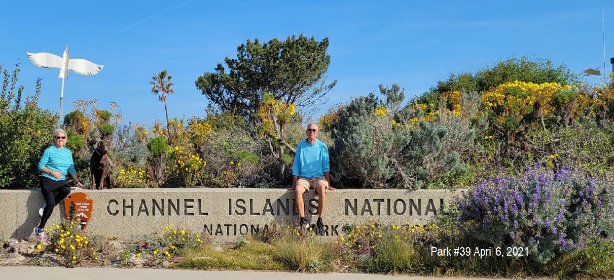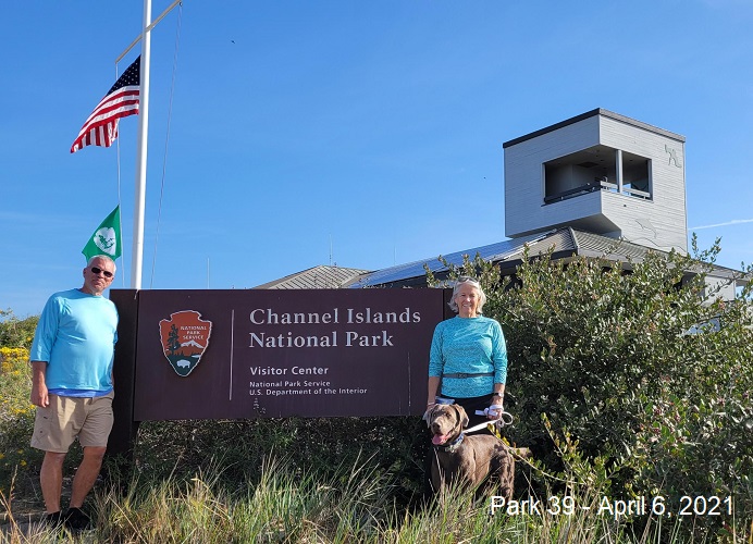This morning, Tuesday 4/6/21, we drove to Channel Islands National Park. Well, we visited the Robert J. Largomarsino Visitor Center in Ventura, CA…that’s it. Sadly, we knew in our planning of this 14 national park drive that we were unable to actually go to any of the islands. We went to the dog friendly (on leash) beach right there at the visitor center and Rangeley LOVED playing in the waves. Of course there was a perfect stick for him laying on the beach as well. I picked up the info to book staying over night out on the islands and the ferry schedule for a well anticipated return trip without the pup.