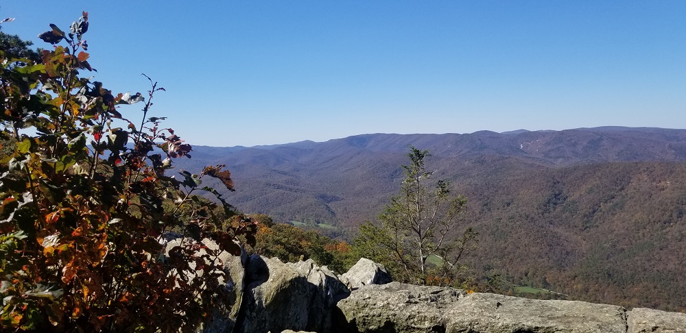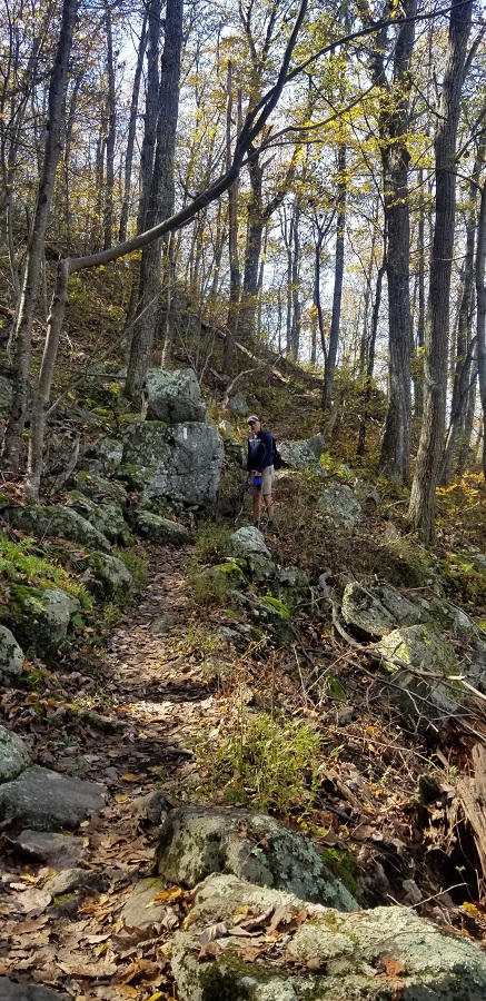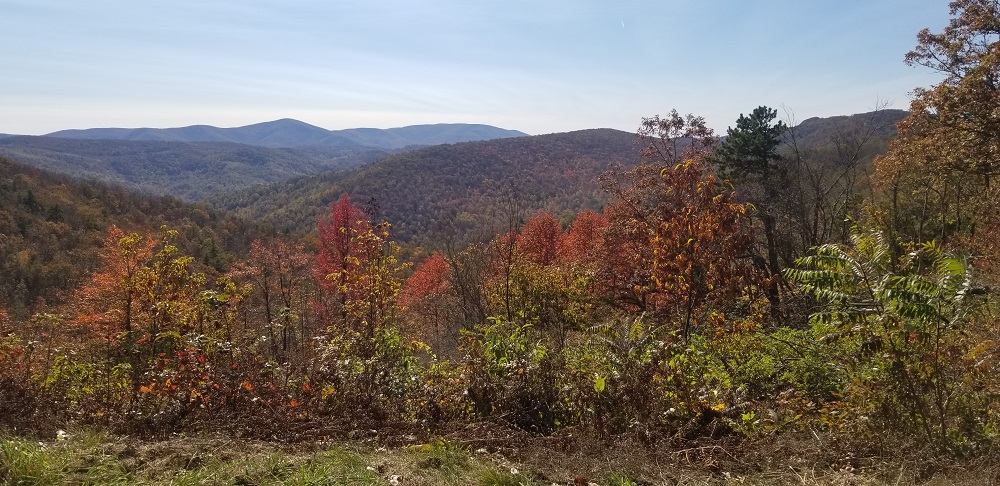 We left Shenandoah and stayed in Staunton, VA for one night. In the morning we drove on the Blue Ridge Parkway south, continuing the spectacular views the fall has to offer. We stopped at a pull off to hike the AT, venturing into the woods for a geocache. I know I have mentioned it already, but I love these wooded hikes! The BR Parkway pull off and overlooks were packed with cars. But once we found a spot, we retreated to the AT and saw only a few people. Some backpacking and staying 2-4 nights, others, like us, just day hiking. It’s too late in the year to see thru-hikers but we did meet one guy doing a 350 mile section hike.