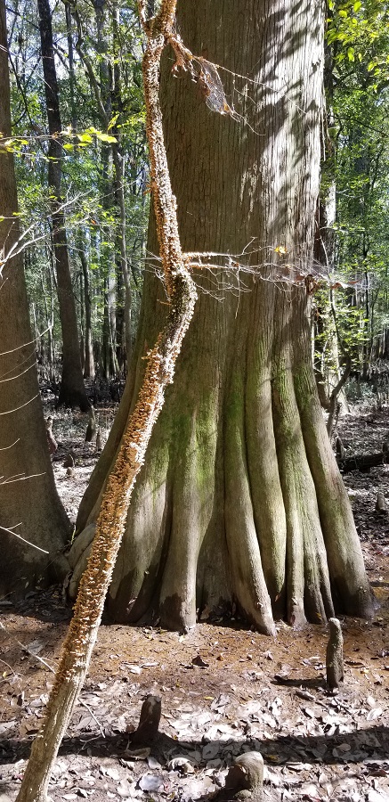 I loved the approach road full of evergreens and deciduous trees just barely starting to show their fall colors. The Boardwalk Trail is teeming with 130-150 foot tall loblolly pines, the bold cypress trees, water tupelos and dwarf palmettos. Many have survived a century or more of fires, floods and hurricanes!