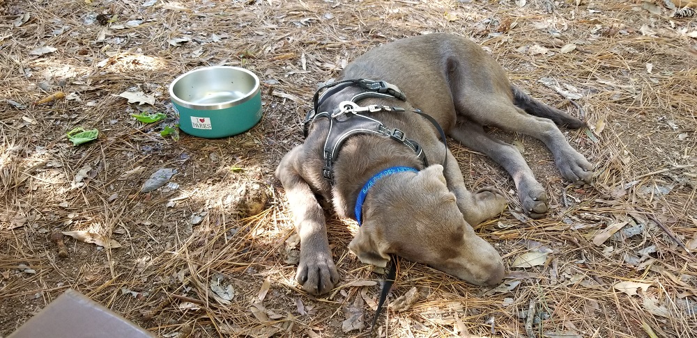We had a really pleasant picnic lunch in the woods by our car in the parking lot. Rangeley ate his lunch, curled up and fell asleep on a soft pine needle bed while Gary and I shared our mutual appreciation for each other and our decision to make the beginning of our seventh week on the road yet another incredible adventure into our country’s protected nature.