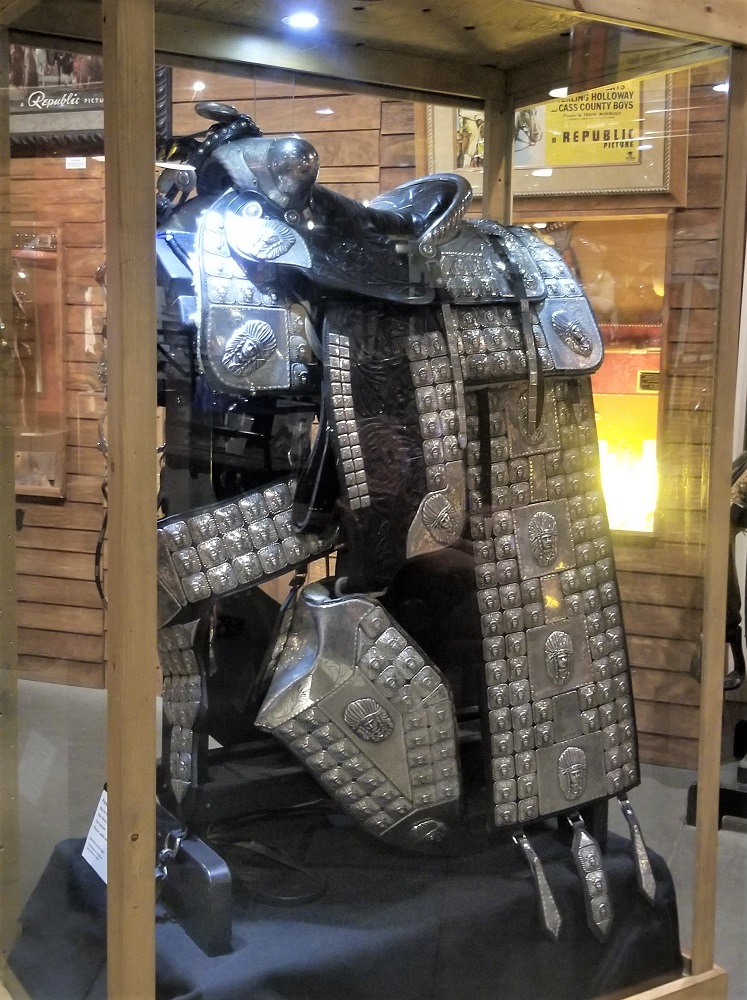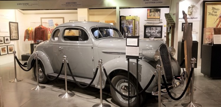 See Gene Autry’s stunt double jumping a horse, over this original car in the museum, while actress Peggy Stewart was in the backseat. Her signed picture in upper right corner is one of many items she’s donated to the museum.