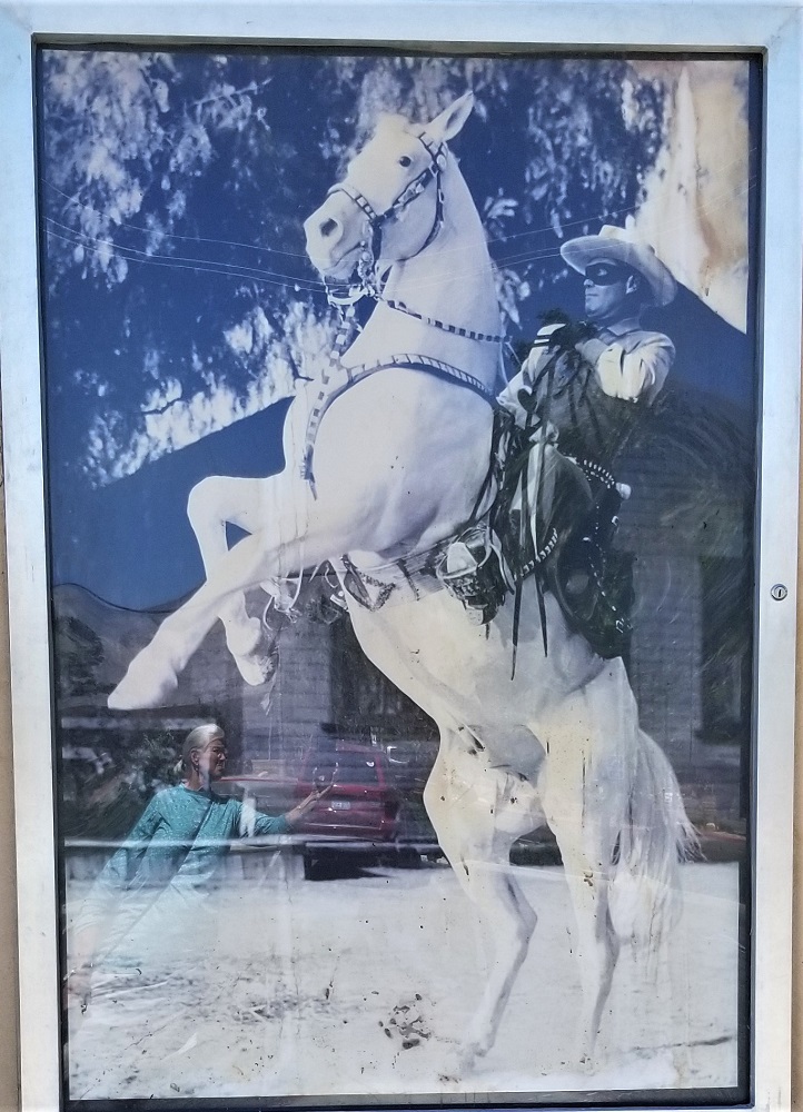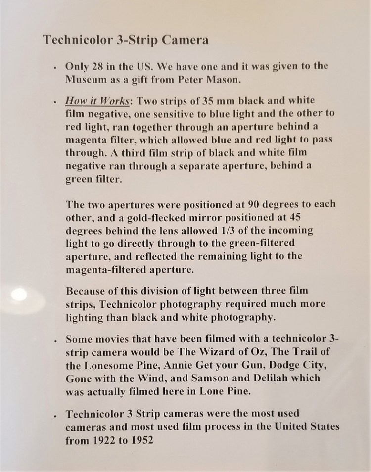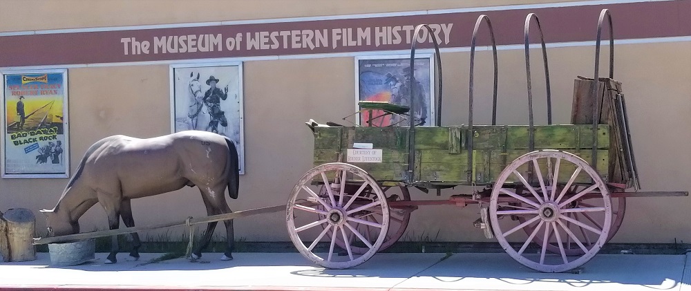 After lunch at The Whiney Portal Store, we returned to Lone Pine to tour The Beverly and Jim Rogers Museum of Lone Pine Film History. Also known as the Museum of Western Film History. They had a well done looping informative video about the Alabama Hills and its film history. Rangeley was allowed in the museum with us like when we were in Roswell last fall and took him to the UFO Museum : )