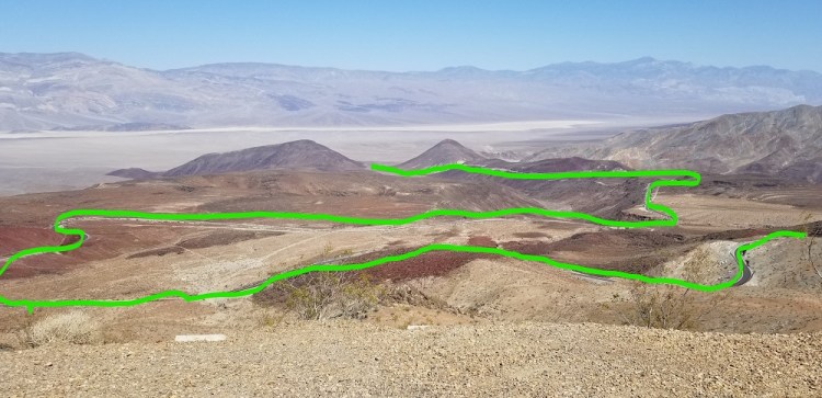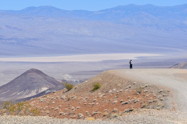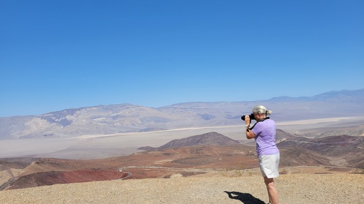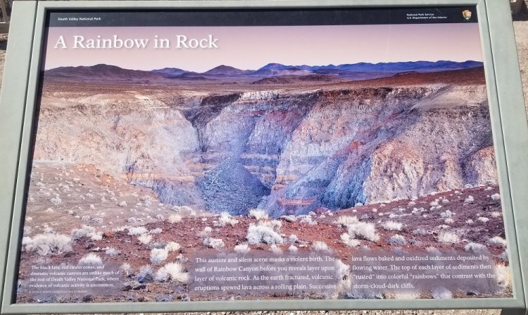 We stopped at Father Crowley Vista Point, overseeing the Panamint Mountains and viewing Rainbow Canyon on the far western side of the park. During the week, this location is the air space for training fighter jets but we were there on a Saturday.