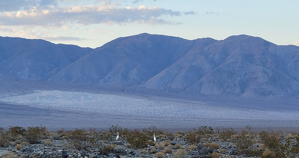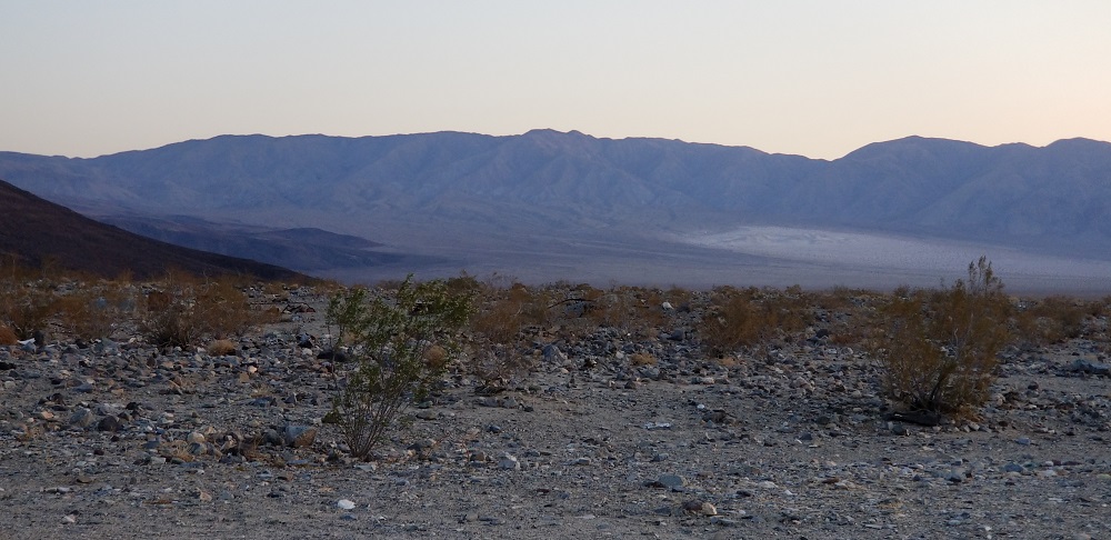 We enjoyed a dinner and I with a Prickly Pear (cactus) Margarita and Gary with his local draft beer in hand relaxed in the quiet town on the Mexican restaurant’s patio. The temps were in the low 90’s but being over 2,000 feet in elevation and a slight wind, we were quite comfortable in the shade. We shared the sunset with a few campers after a walk in the desert. Tomorrow we play tourists again stopping at a few highlights of this interestingly diverse landscape of mountains all around and the lowest spot in the US, Badwater Basin.