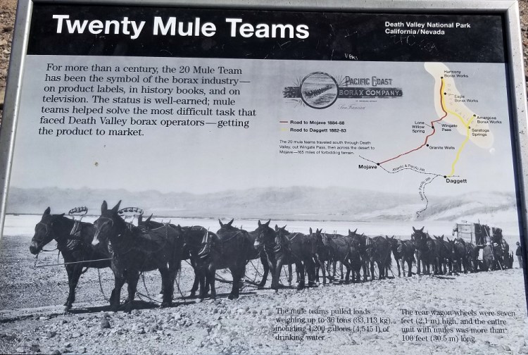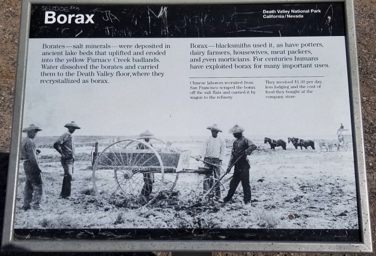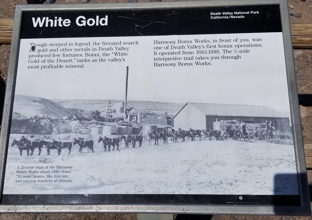 South of the sand dunes, was Harmony Borax Works. A mining camp, in the true sense of the word, where Chinese people working the collection of the ore in the mid 1800’s were over worked and under paid in this harsh, dry, scorching hot land. Driving 20 mules hundreds of miles to deliver the heavy earthen product to the railroads was a cruel and short-lived business at this particular location.
