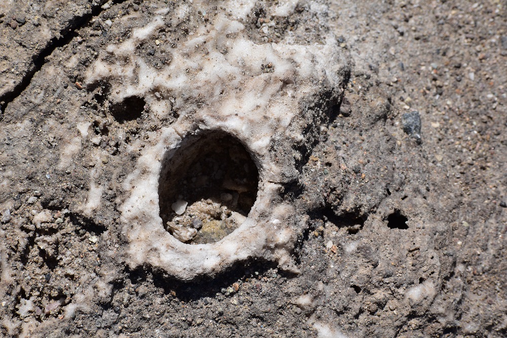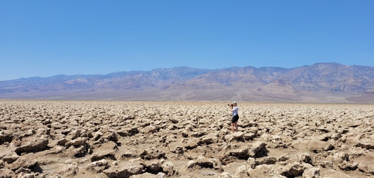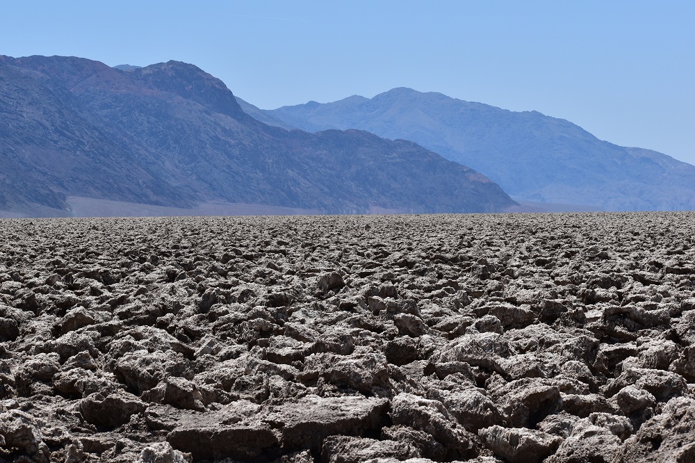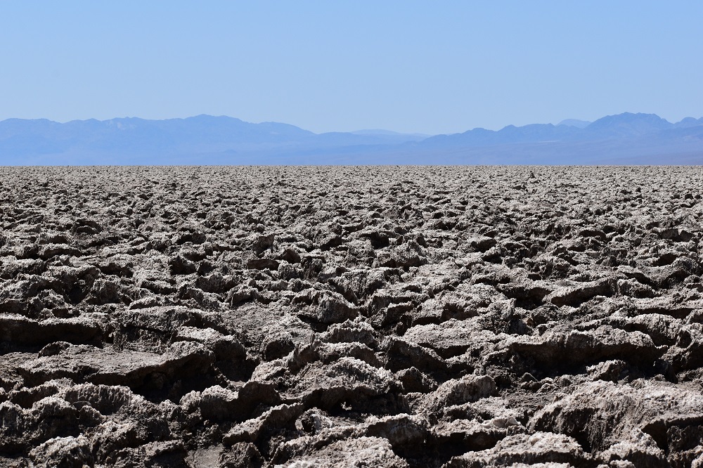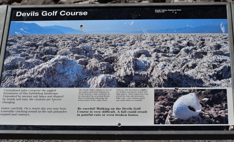 We continued on to Devils Golf Course. We were in awe of the now dry salt and mud flats and for lack of a better description, large crunchy terrain. The location of this sight to see lies between the Amargosa Mountain Range to the east and the Panamint Range to the west.