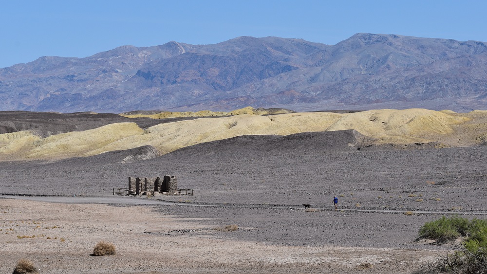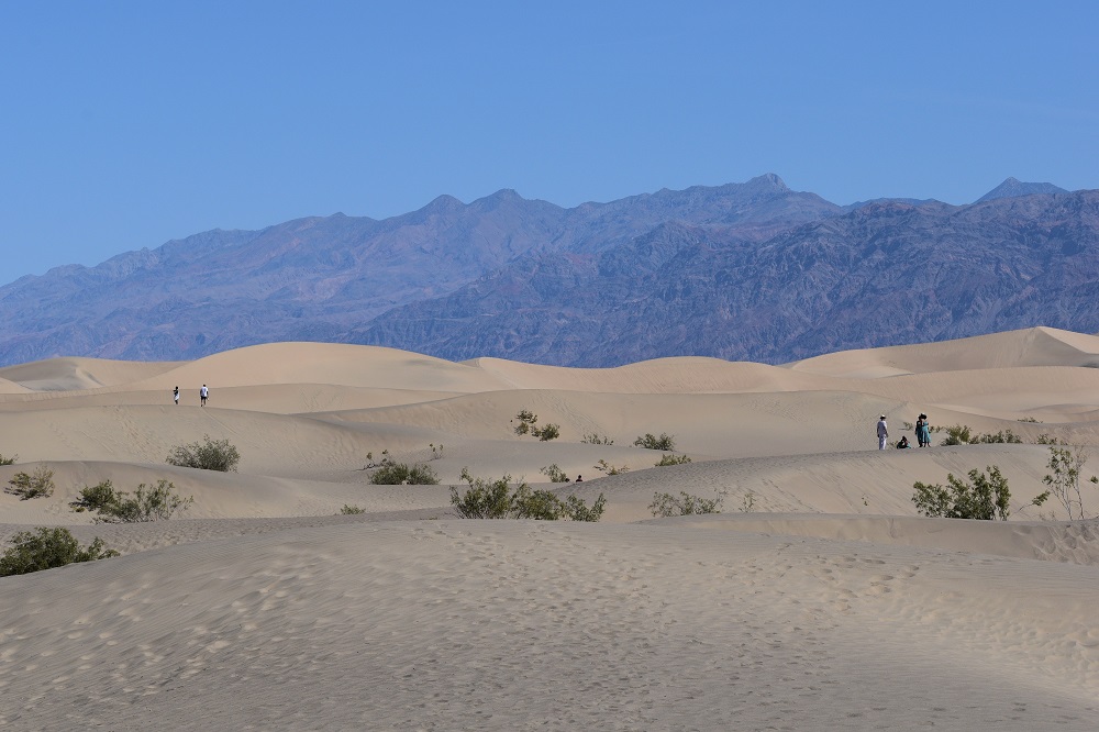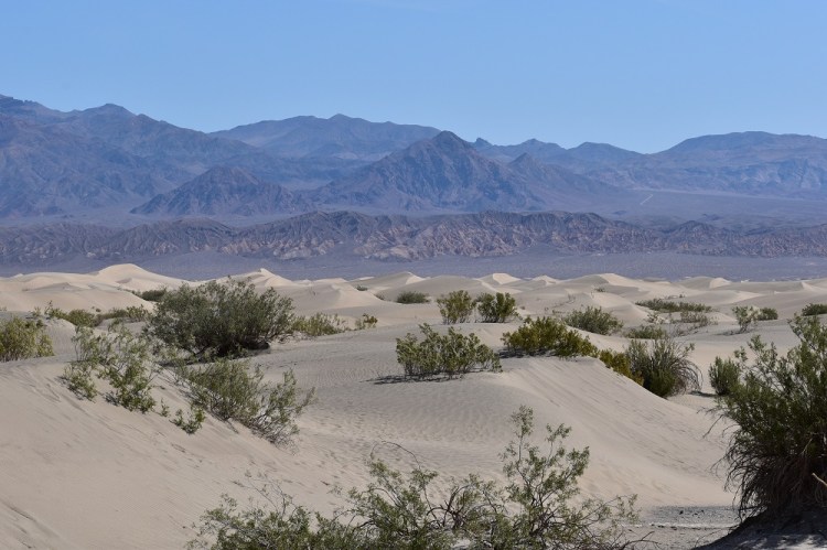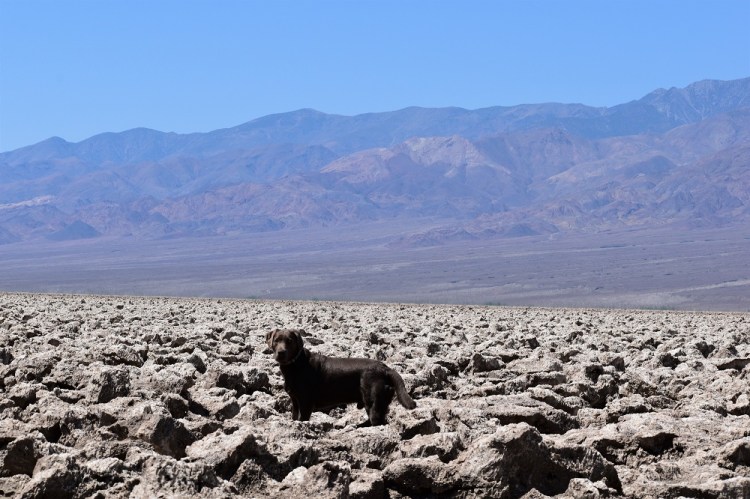 Our first stop was Mesquite Flat Sand Dunes located near Stovepipe Wells, just about dead center within the park. We have been to White Sands, Indiana Dunes and Great Sand Dunes National Parks so this was a smaller version for sure, but interesting phenomenon still the same. Unfortunately, Rangeley was not allowed on these sand piles but was on the previous three.