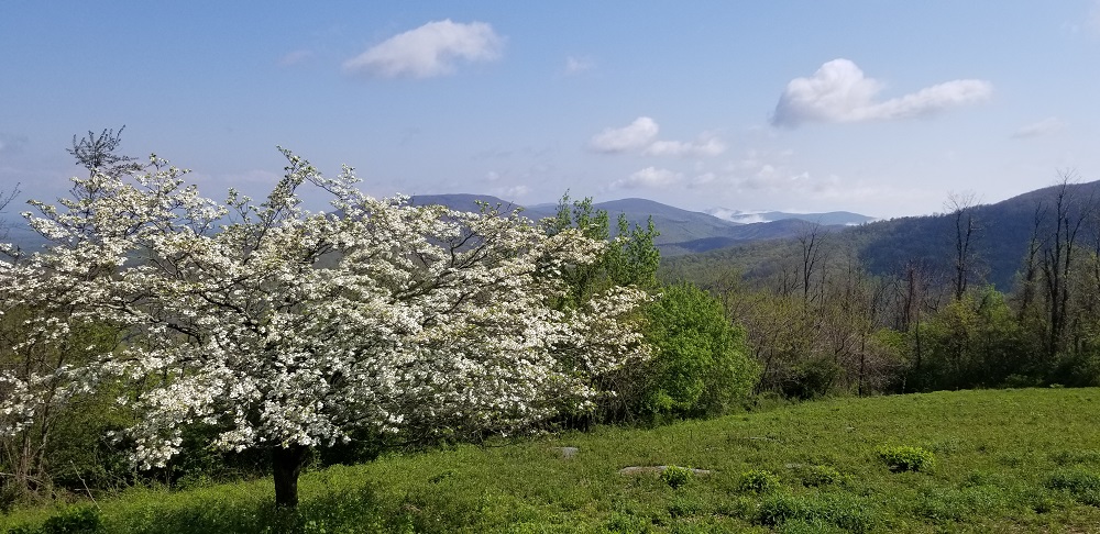 The lower elevations are in the 80’s, green and preparing for summer. We saw a fox, bright red Cardinals, a snake and squirrels galore! As we drove to over 4,000 ft, early spring was evident…no leaves on the trees yet, sparse spring flowers in the woods and cool temps of 70 degrees and sunny.