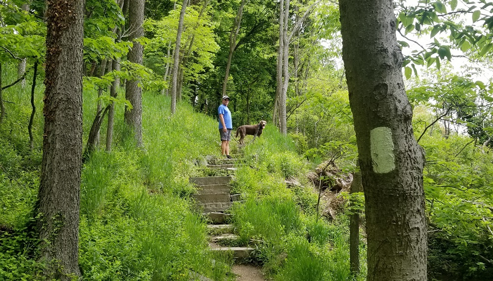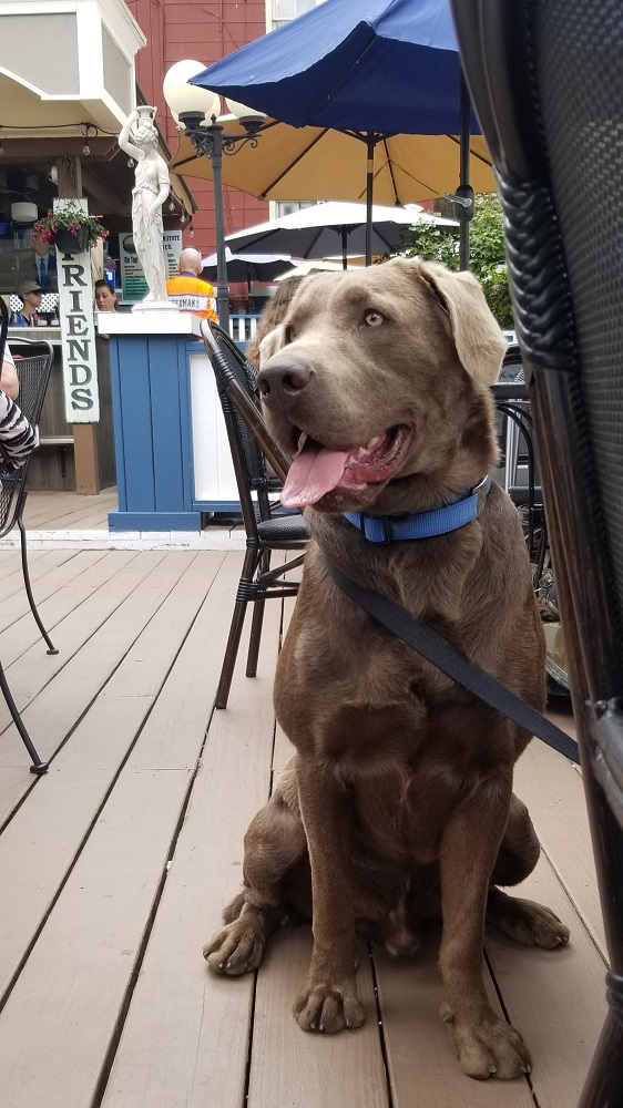 Rangeley, Gary and I walked about 3/4 mile on the AT, from the ATC, down into the historic old town of Harpers Ferry for lunch. Dog friendly patios are easy to find in this active community. Distance bicyclists and hikers are common and locals are friendly to humans and canines alike.