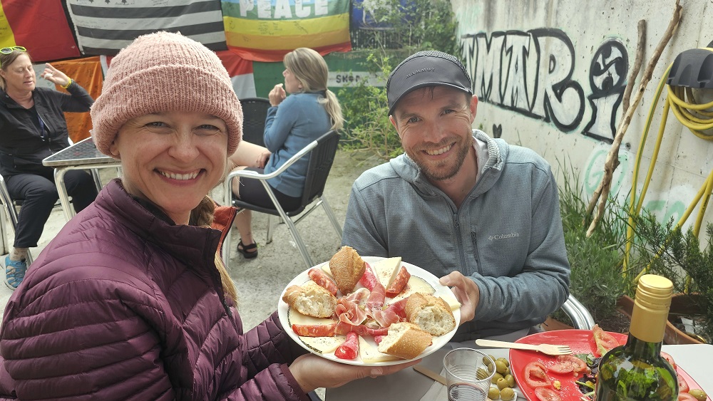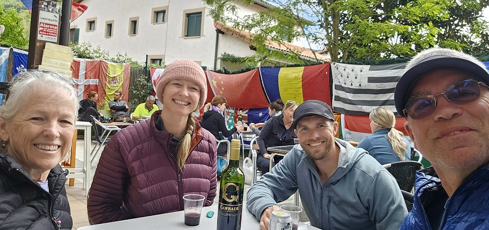 We have so much enjoyed having the kids with us. We have shared in-depth and philosophical talks over private dinners. We’ve shared the joy of group dinners with other Pilgrims from around the world. We sometimes walk all four of us together, with just one other family member, with other’s walking The Way and each of us alone. We’ve been sharing blister care, picture taking ideas, snacks and coffee sitting on a curb outside a small 1600’s village’s crowded café. We have been sleeping in private rooms with our own bathrooms or shared with others. The kids have been experiencing some private accommodations and the true Camino group bunk rooms all while meeting a variety of mutual adventurers of all ages in the same room.